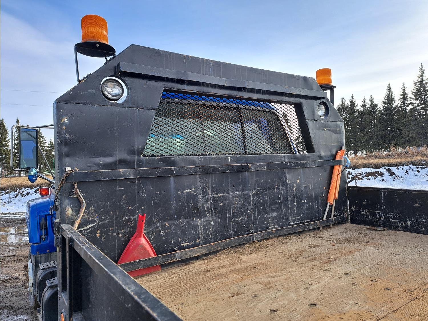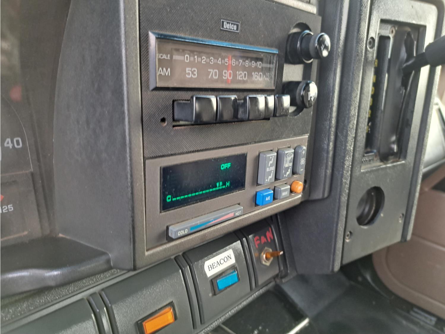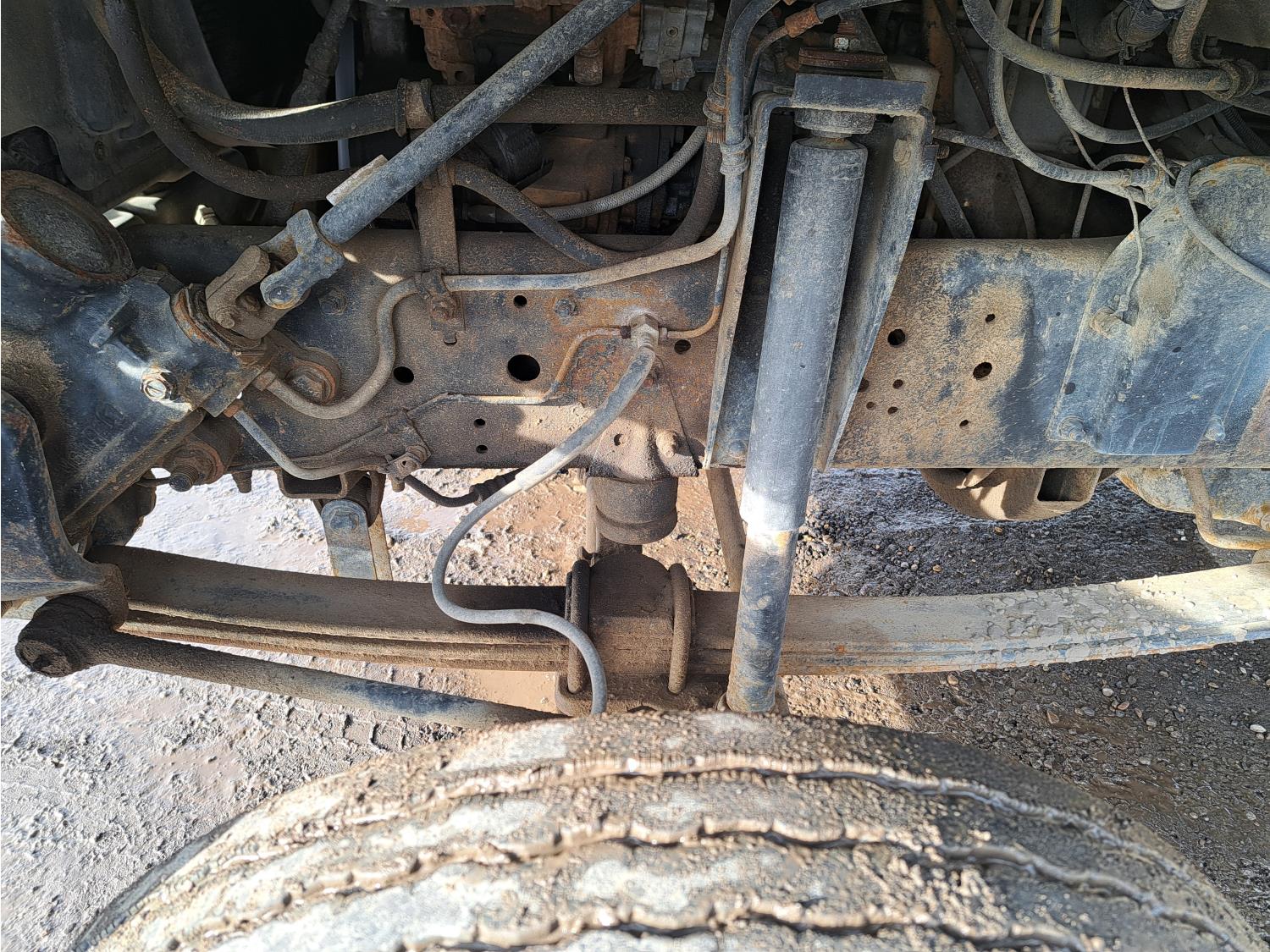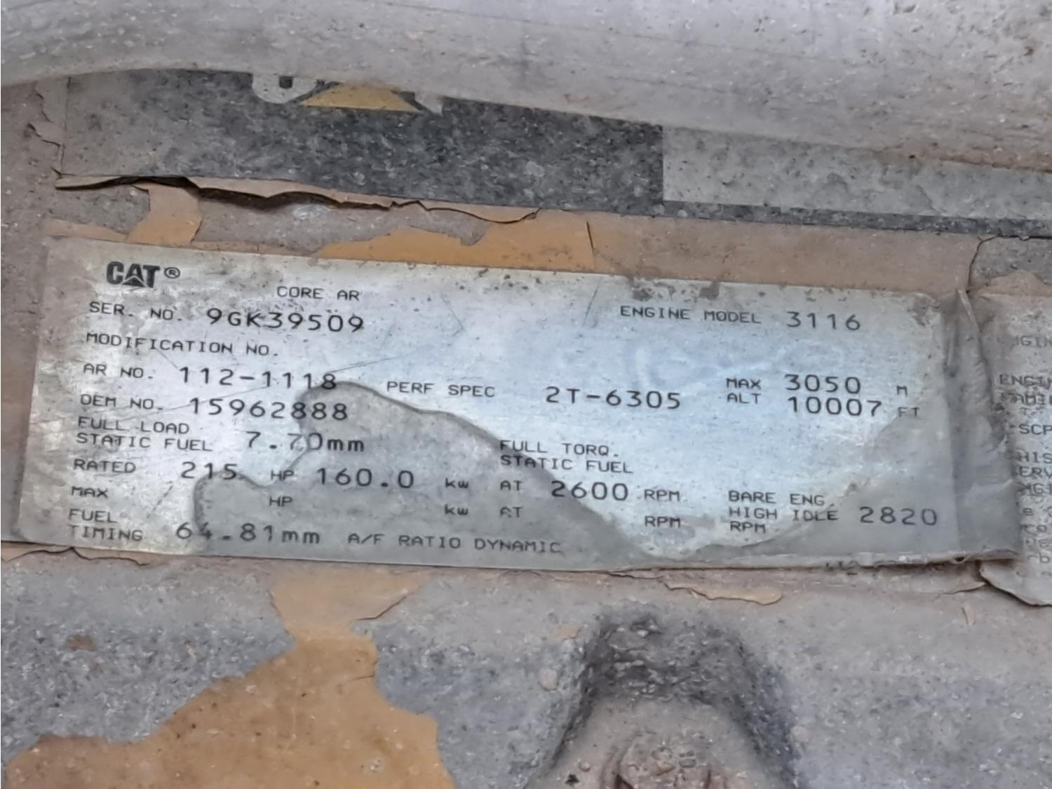 Caterpillar 3116 6.6 V8 215 HP diesel engine, electric engine block heater, 6 speed automatic transmission, A/C, air ride seats, radio, steel headache rack, steel tool boxes, 7 ft 9 inch x 11 ft 8 inch deck, single ram hoist, beacons, air ride suspension, 200 inch WB, 225/70R19.5 tires