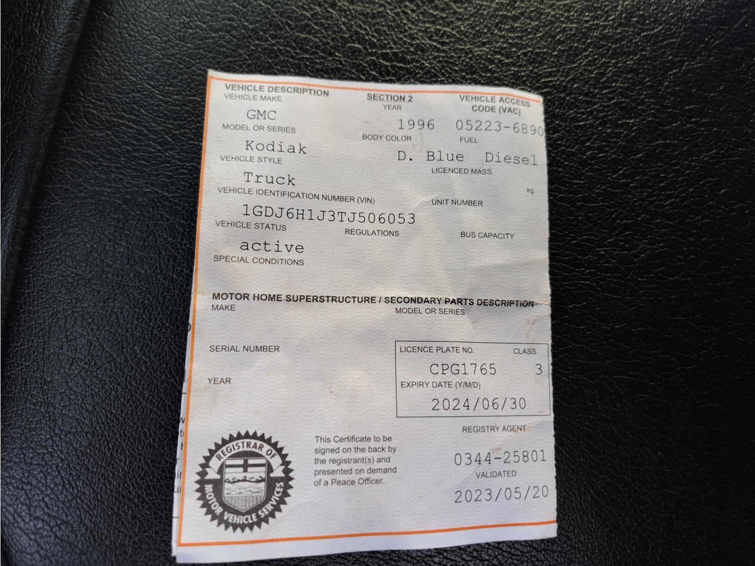 Copy of registration on hand. - Location: