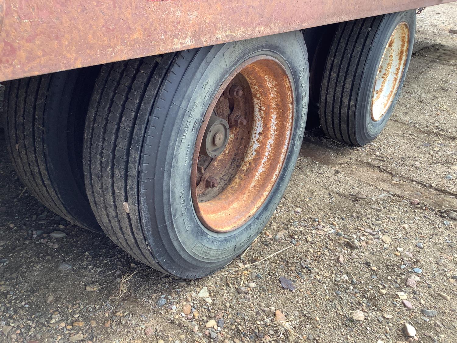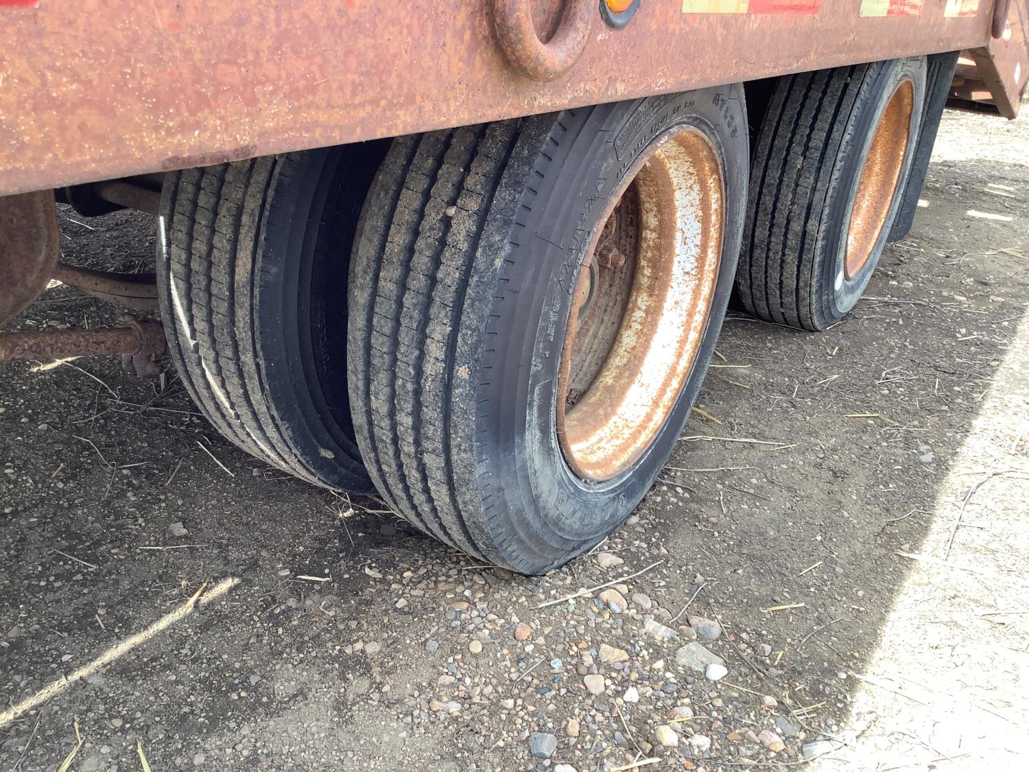 102 inch wide deck, 60 inch beaver tails, wood deck, spring suspension, pintle hitch, air brakes, 20000 lb axles, 215/75R17.5 tires