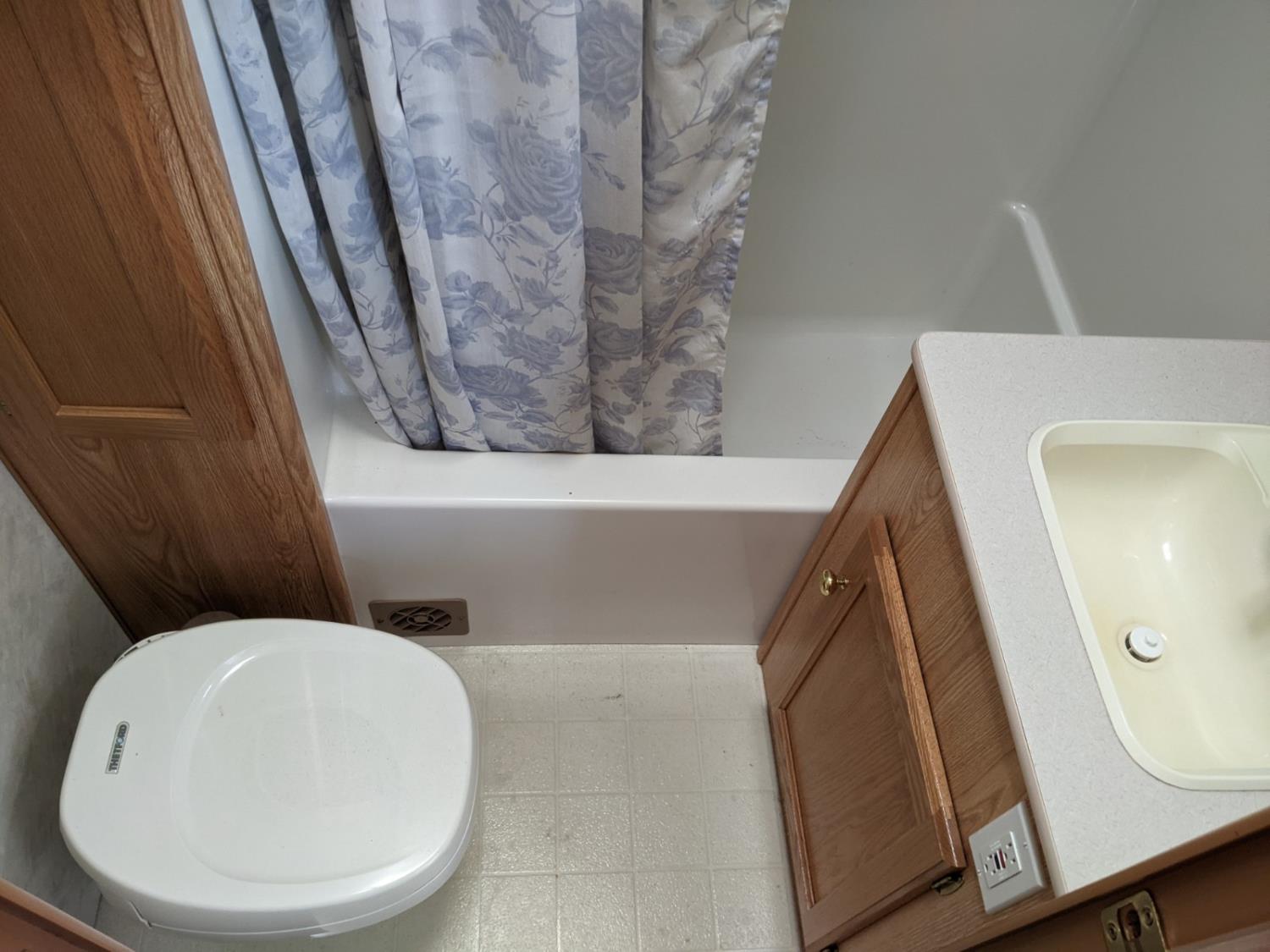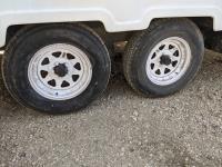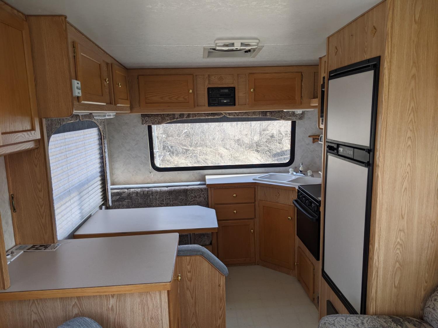 Sleeps 4, stove, fridge, microwave, full bath, master bedroom, A/C, manual awning, power levelling jacks, spring suspension, electric brakes, 225/75R15 tires