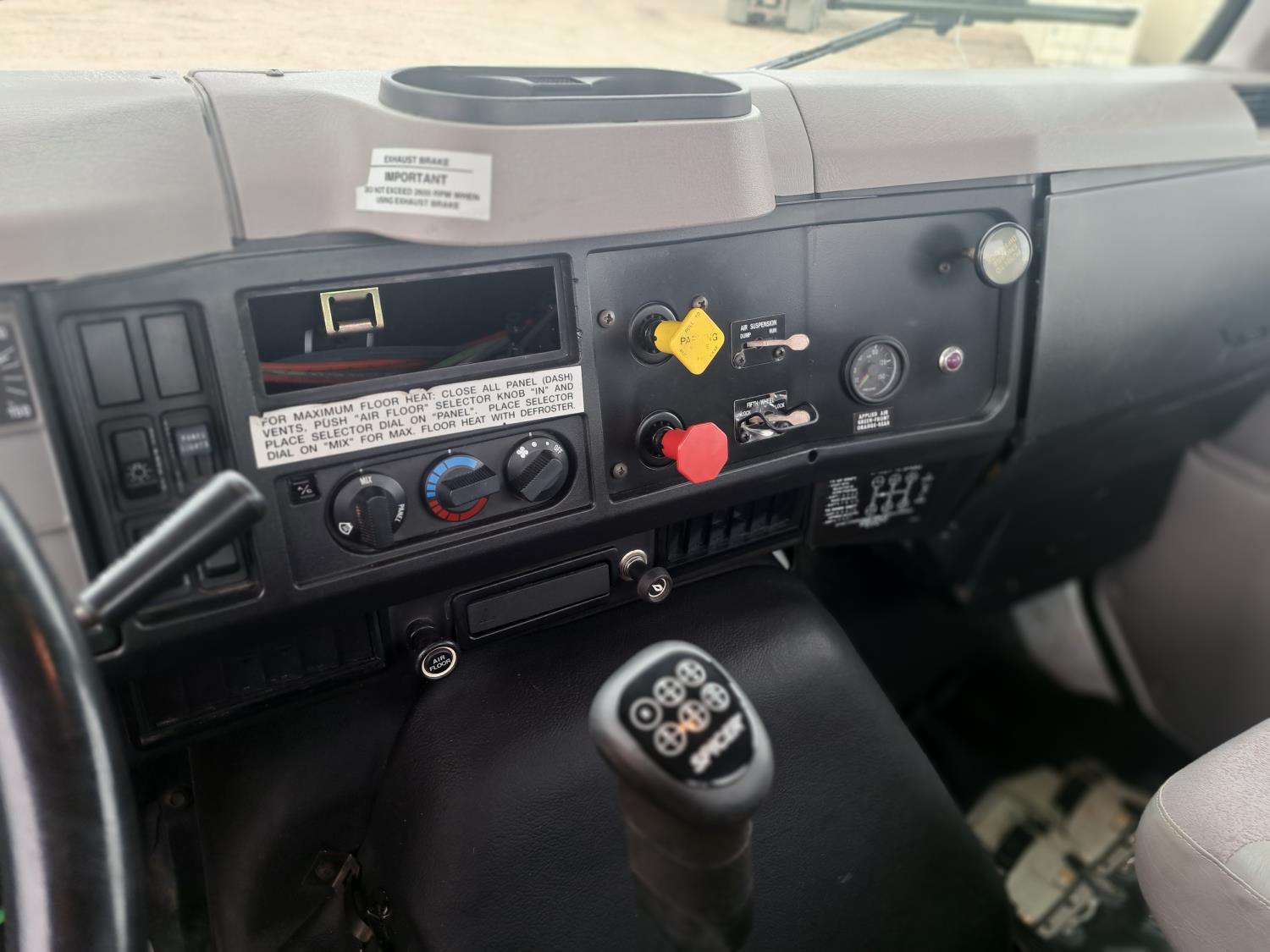 International diesel engine, engine brake, electric engine block heater, Spicer 10 speed manual transmission, A/C, cruise control, leather interior, air ride driver seat, air ride suspension, 12,000 undefined front axle, 20,000 undefined rear axles, 148 inch WB, Tilt Steering, 11R22.5 tires