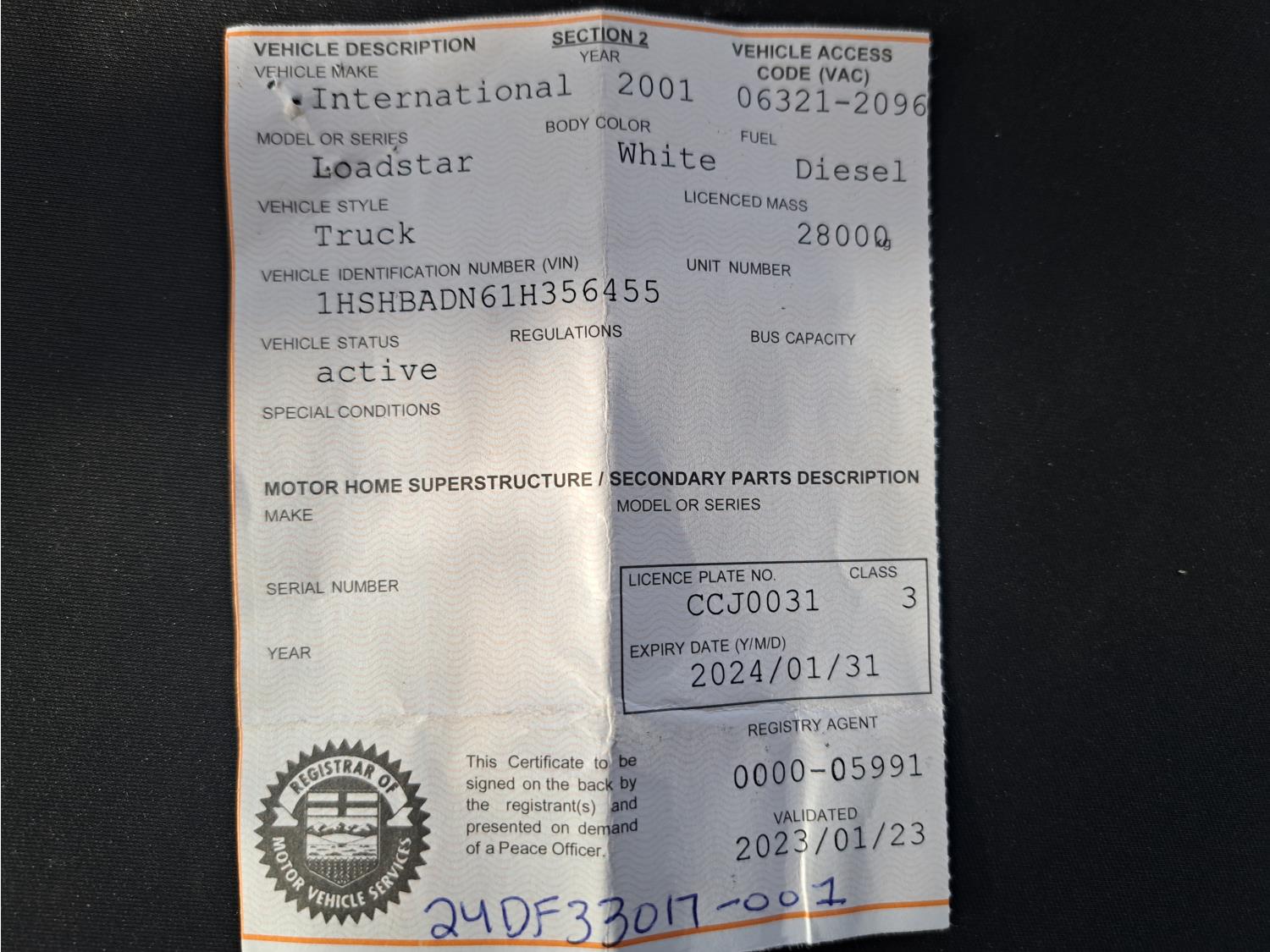 Copy of registration on hand. - Location: