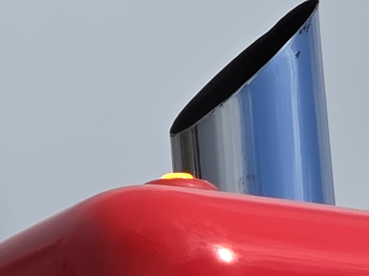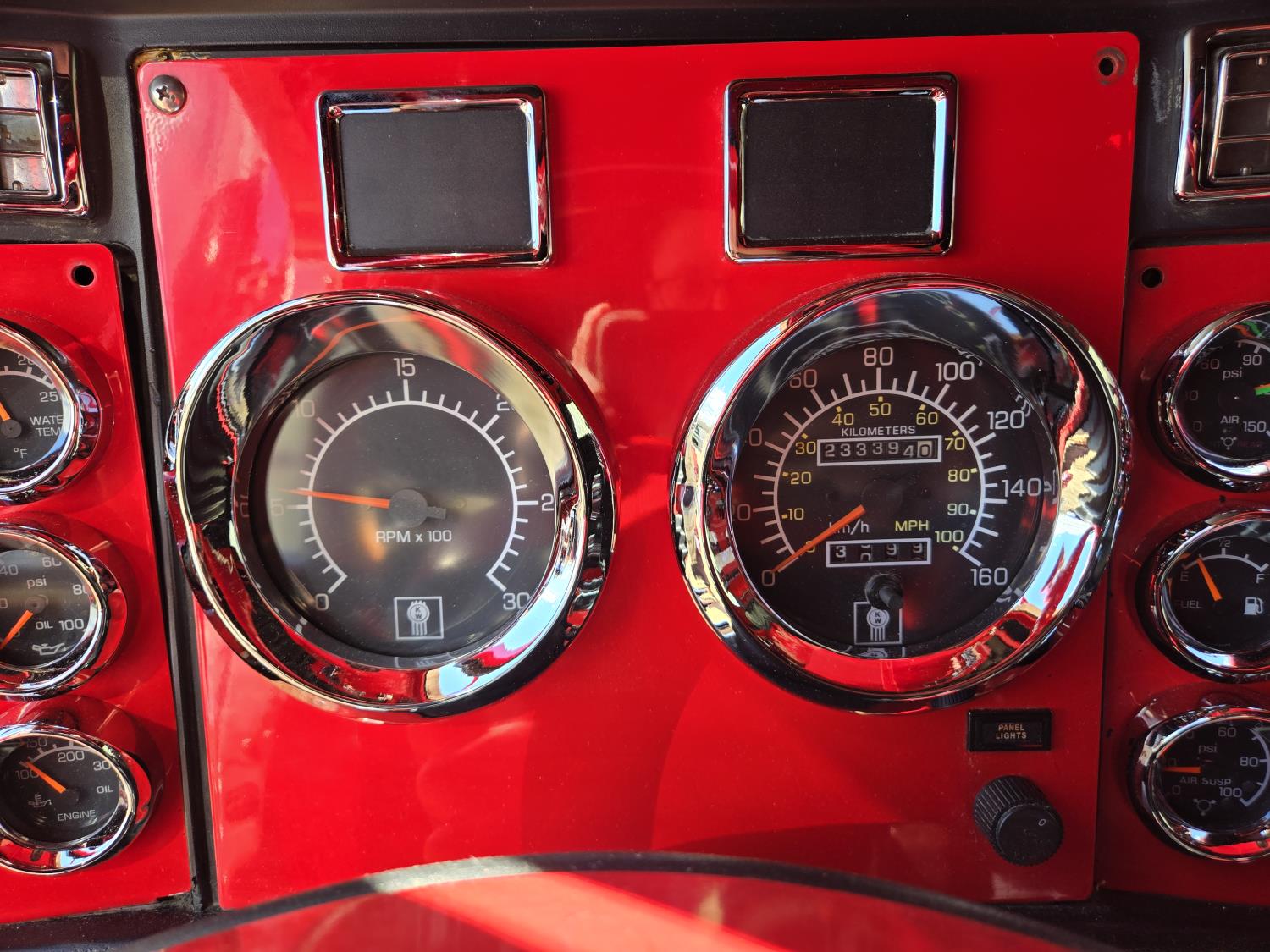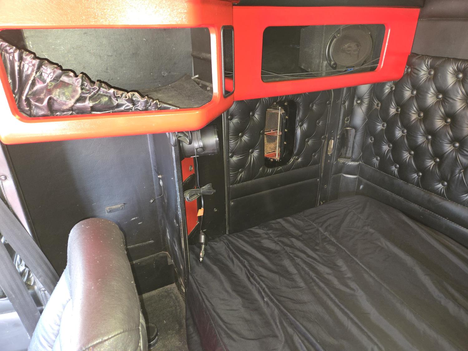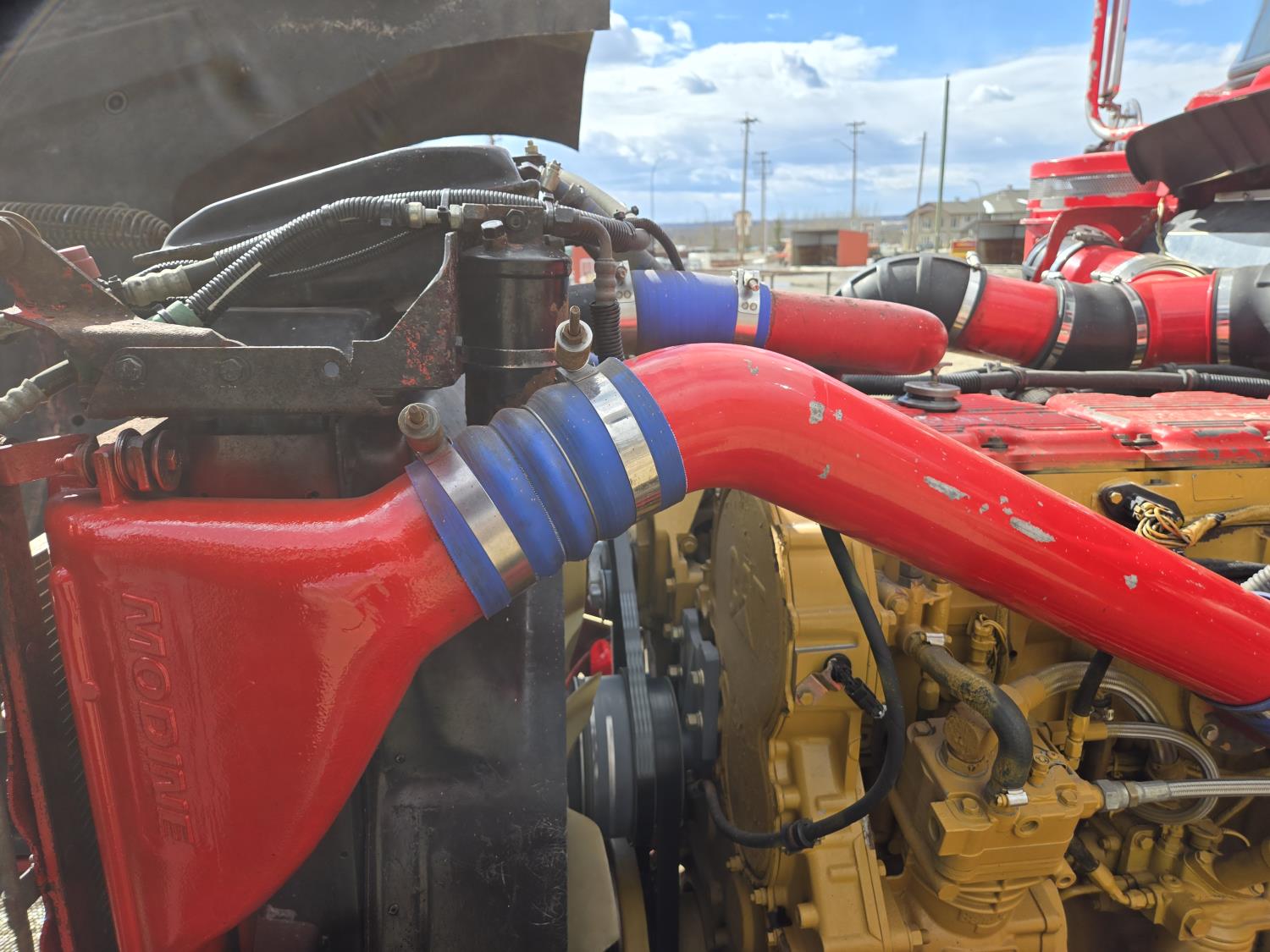 Caterpillar C15 6 cylinder twin turbo 550 HP engine, engine brake, Eaton Fuller 18 speed manual transmission, Webasto heater for cab only, 74 inch Aero Cab mid rise, sleeper, 12 Gauge Custom front air assist suspension, air ride suspension, 12,000 lb front axle, 40,000 lb rear axles, diff lock, 3.70 ratio, 258 inch WB, back up camera, 12 Gauge Custom exterior and interior, half fiber glass rear fenders, T-bar rear tail lights, split left fuel tank fuel/hydraulic oil, fuel tank filler panel, strobe beacon lights, aluminum outer wheels, 11R22.5 tires