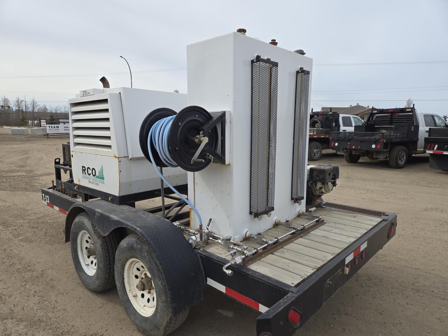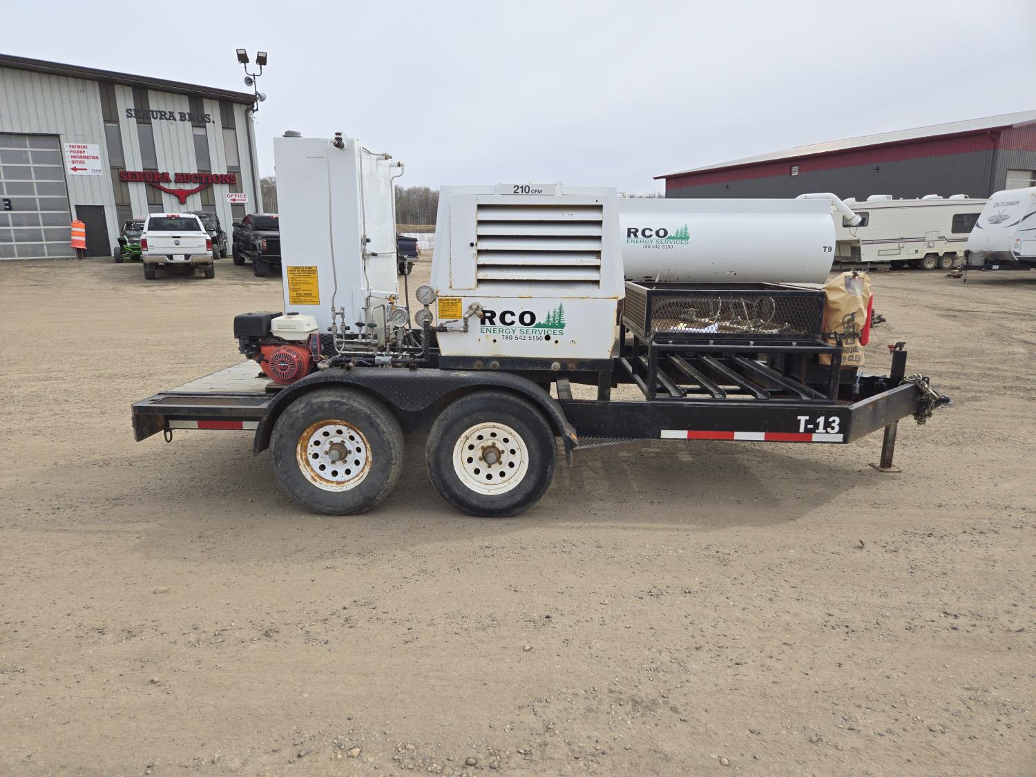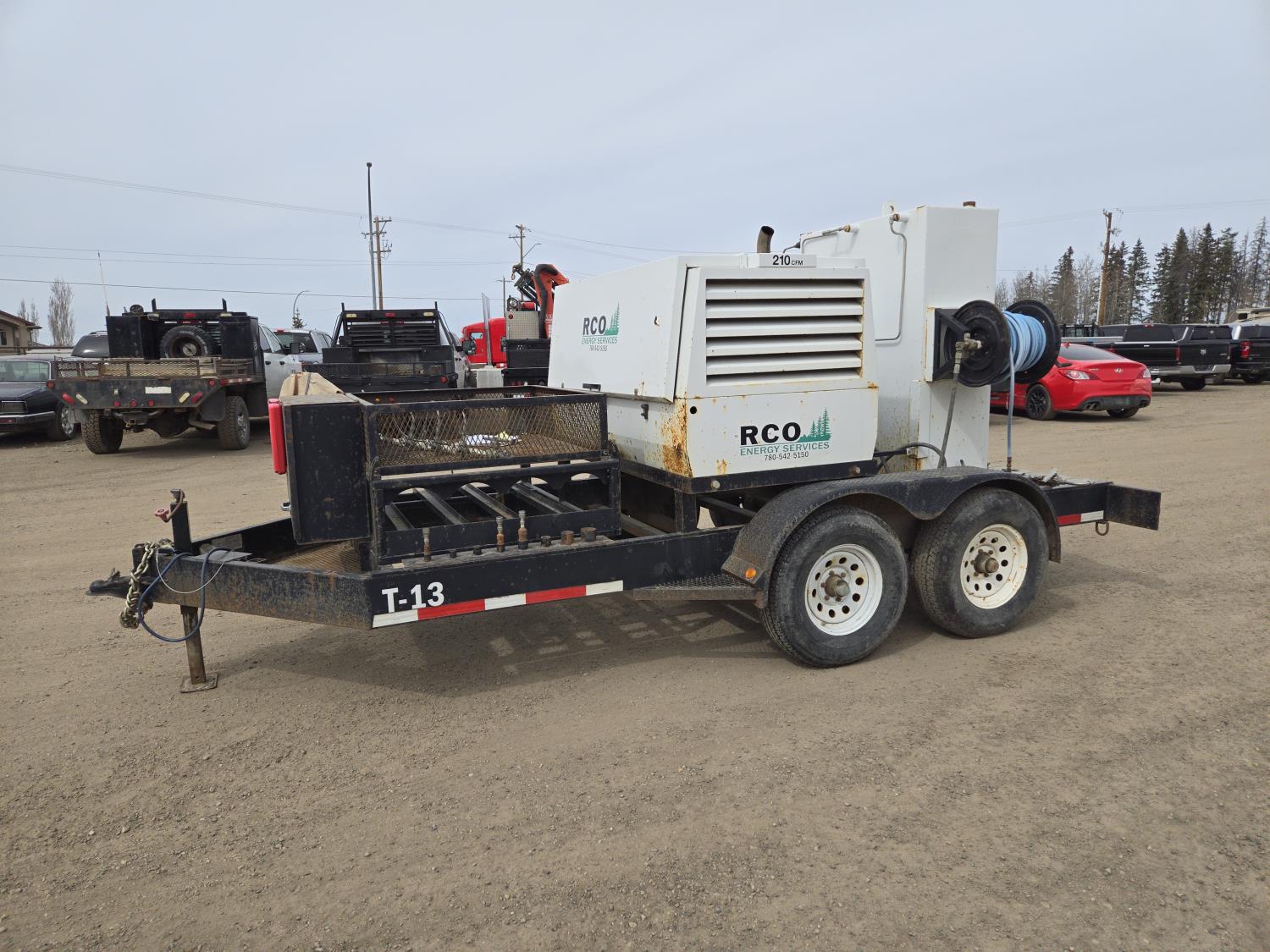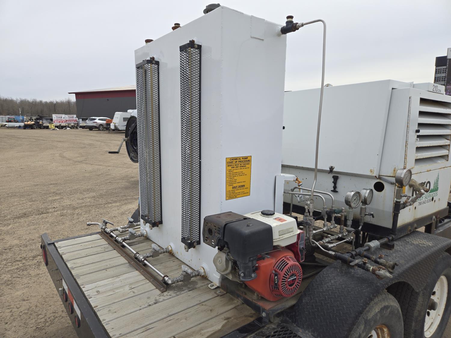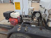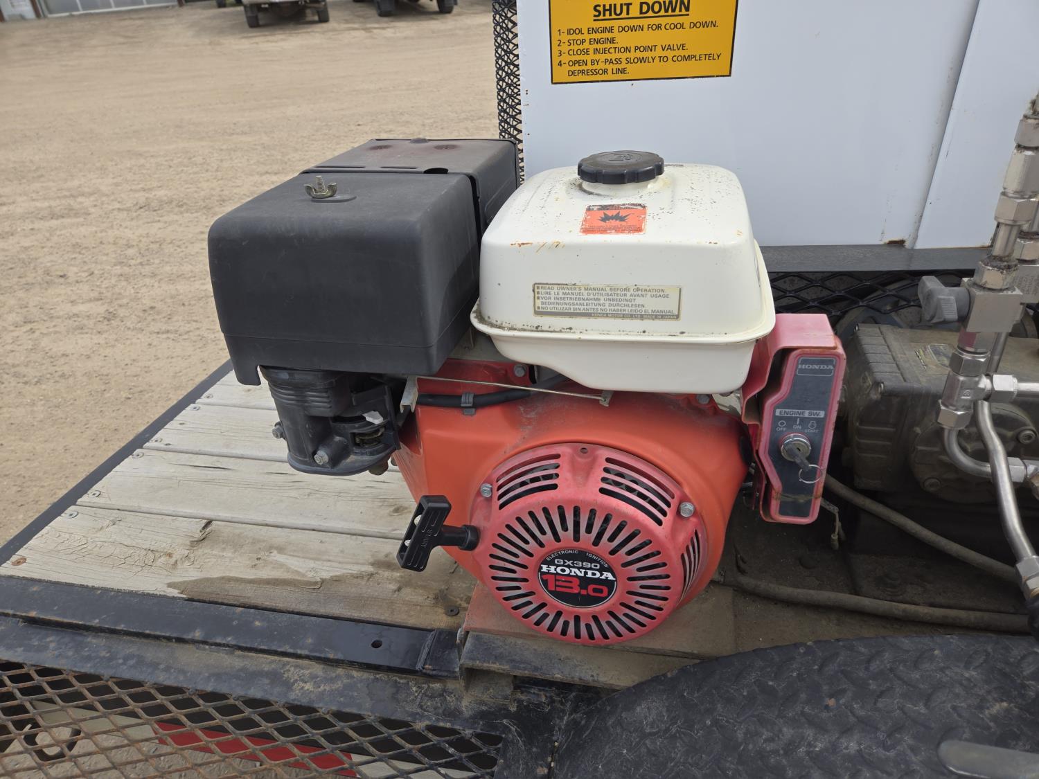 John Deere diesel engine on compressor, Honda 13 HP electric start gas engine with pump connected to liquid storage tank, 6 bolt axles, spring suspension, 235/80R16 tires
