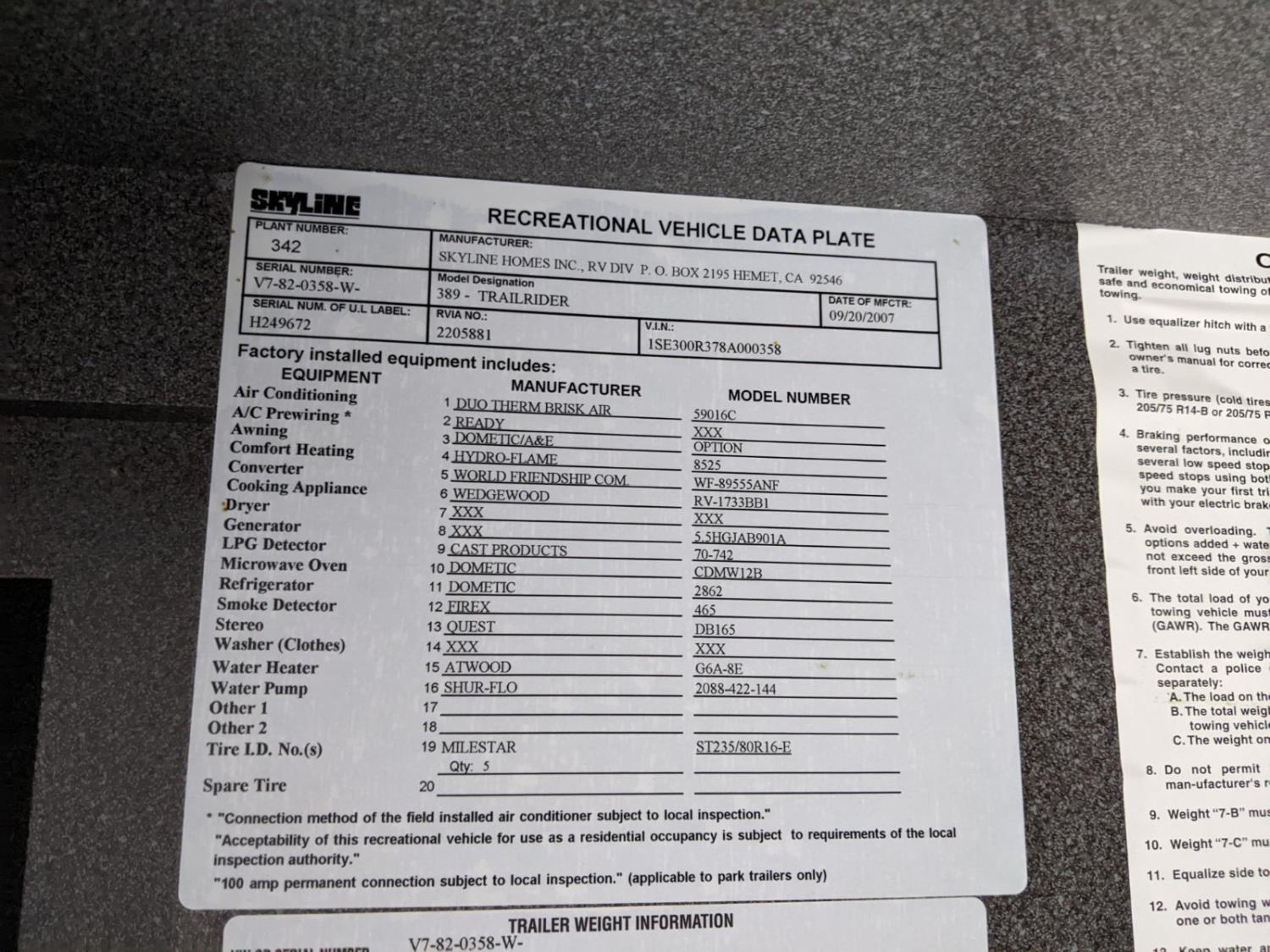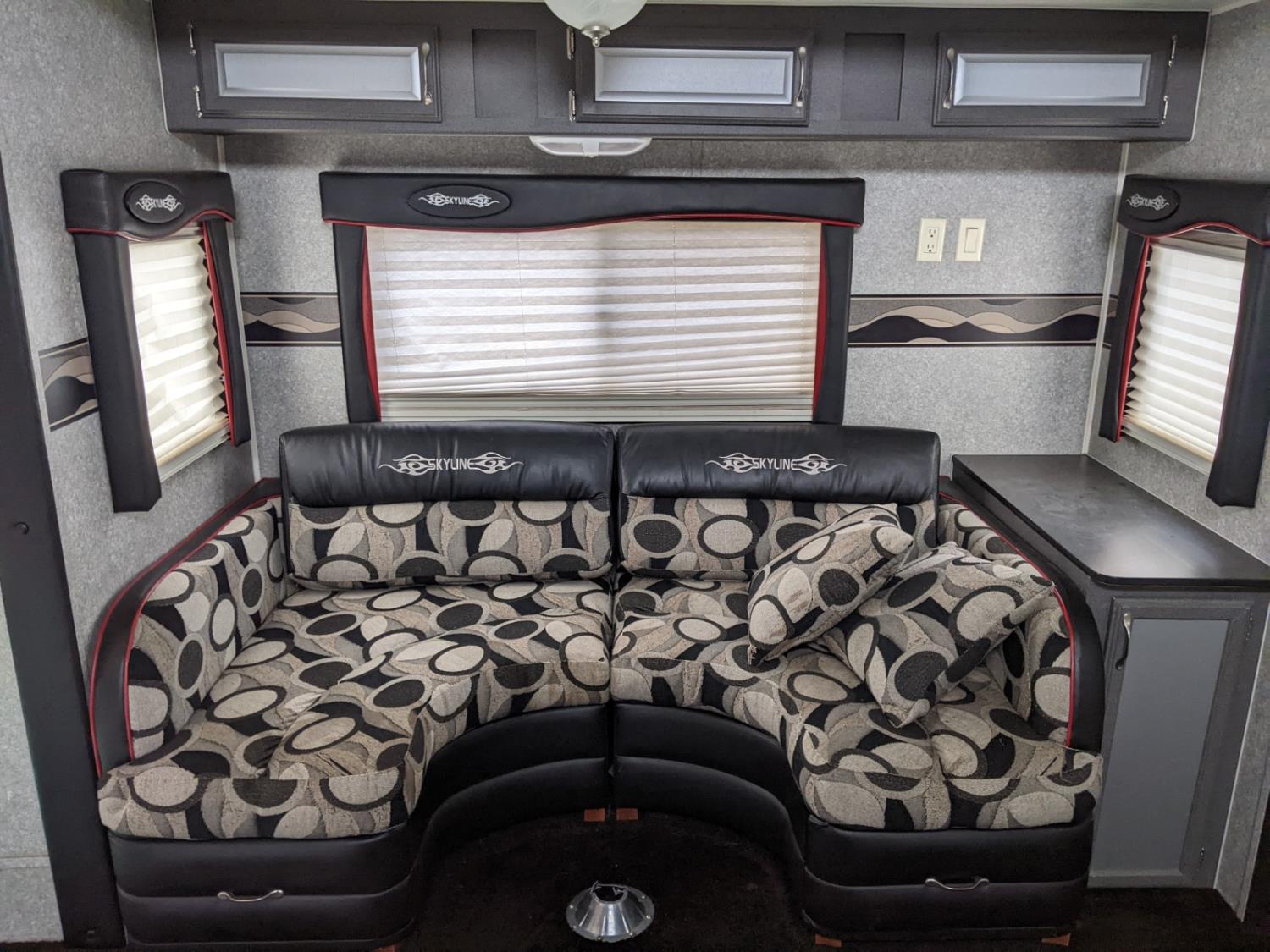 Sleeps 6, stove, fridge, microwave, full bath, master bedroom, A/C, 3 slides, manual awning, Onan 5500 generator, power levelling jacks, spring suspension, electric brakes, fuel station, outside shower hookup, 235/80R16 tires