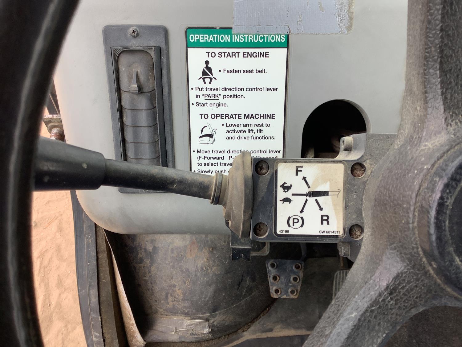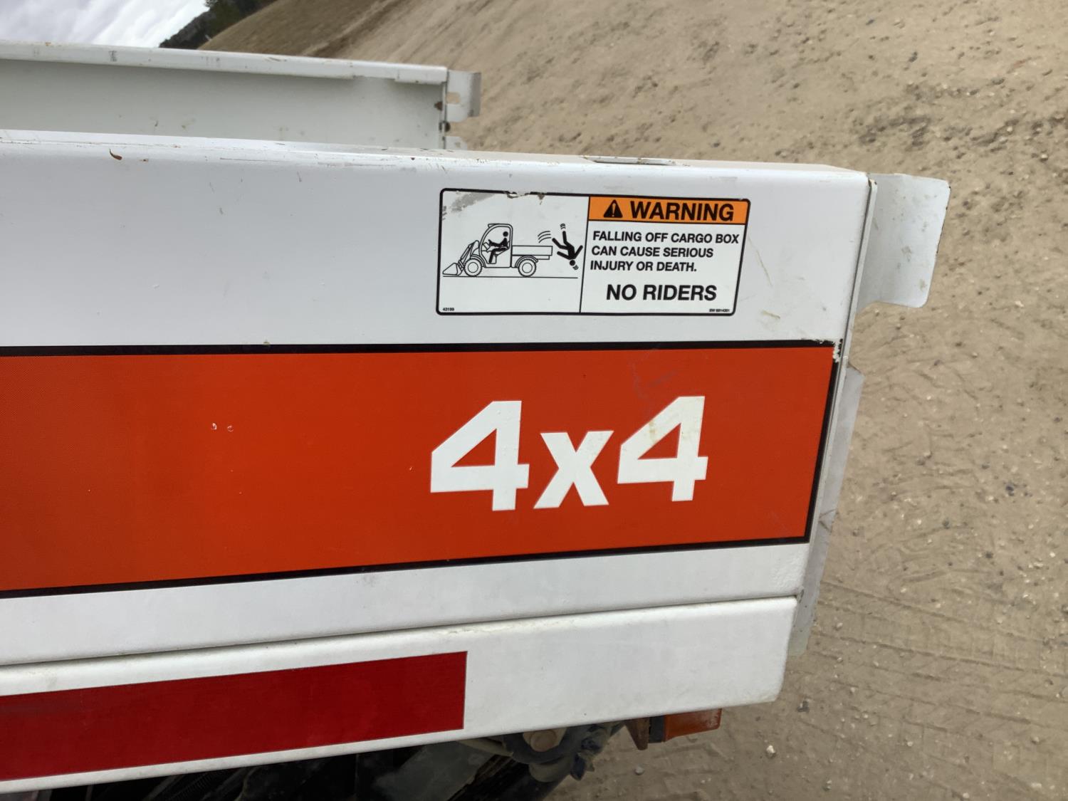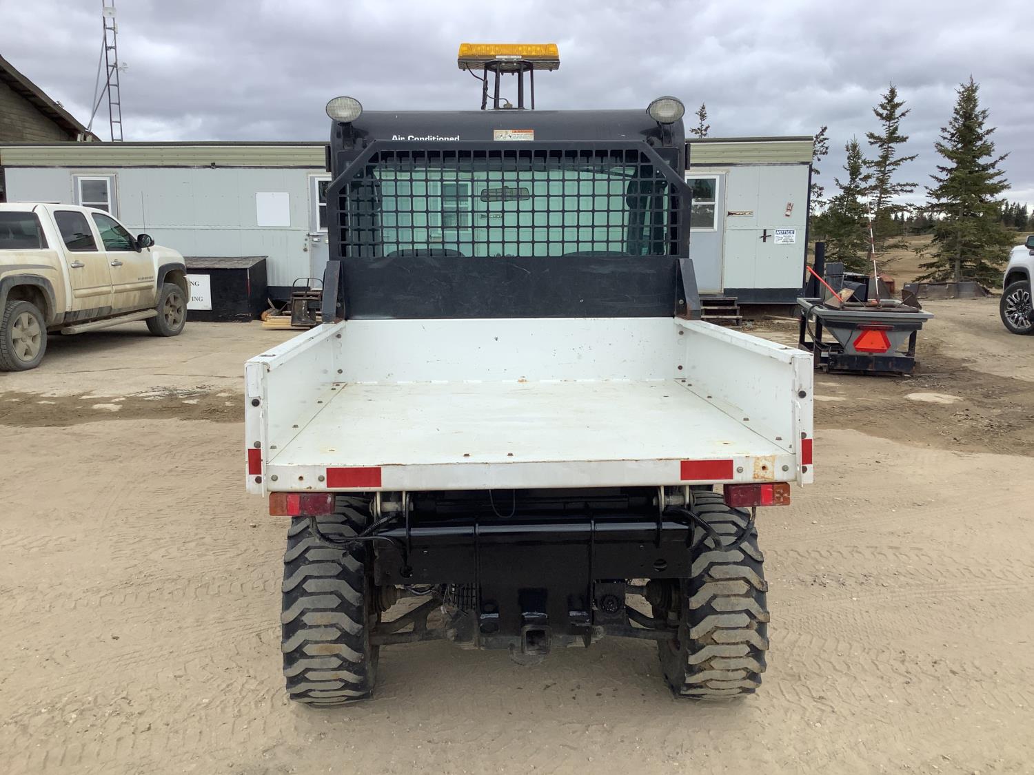 61 HP diesel engine, high/lo transmission, cab, AC, heat, aux hydraulics, dump box, front end loader, Q/A 72 inch bucket, rear receiver hitch