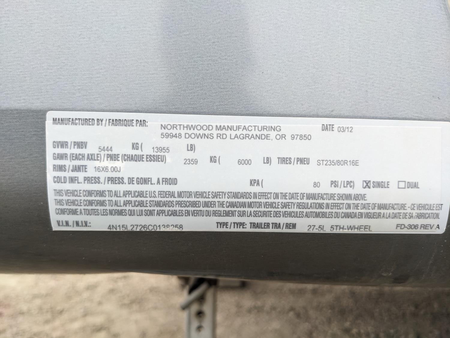 472 2012 Arctic Fox Silver Fox Edition 28 Ft T/A 5th Wheel Travel Trailer
