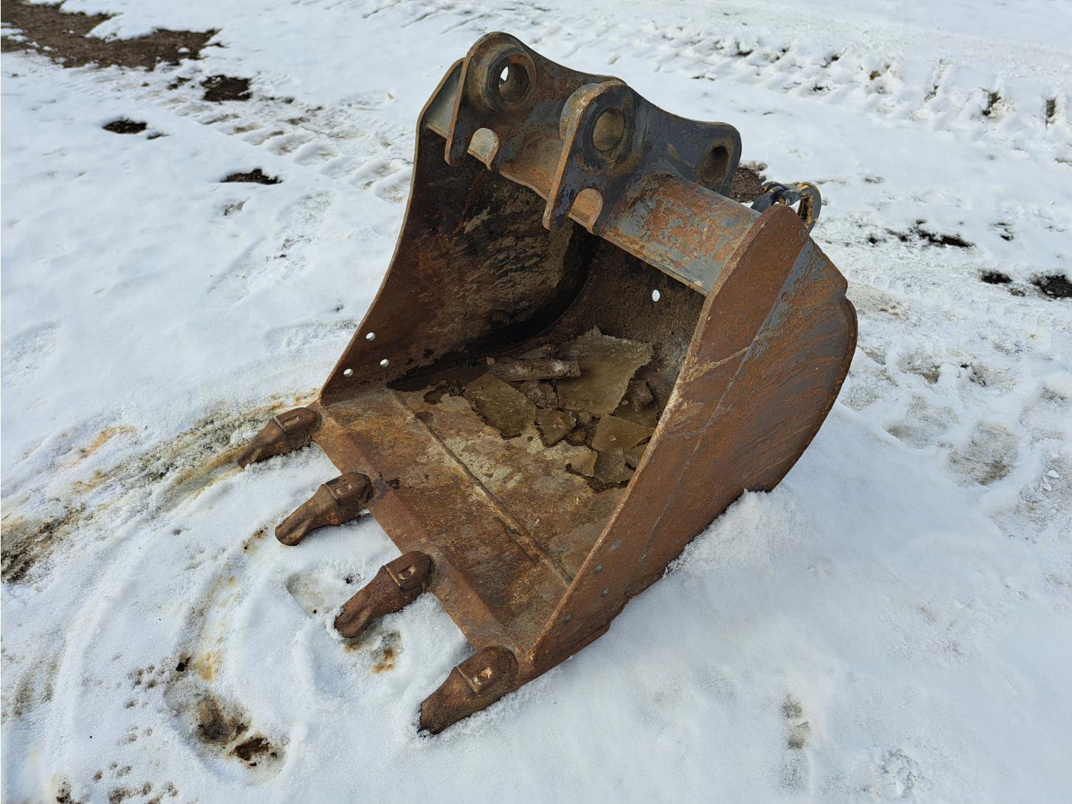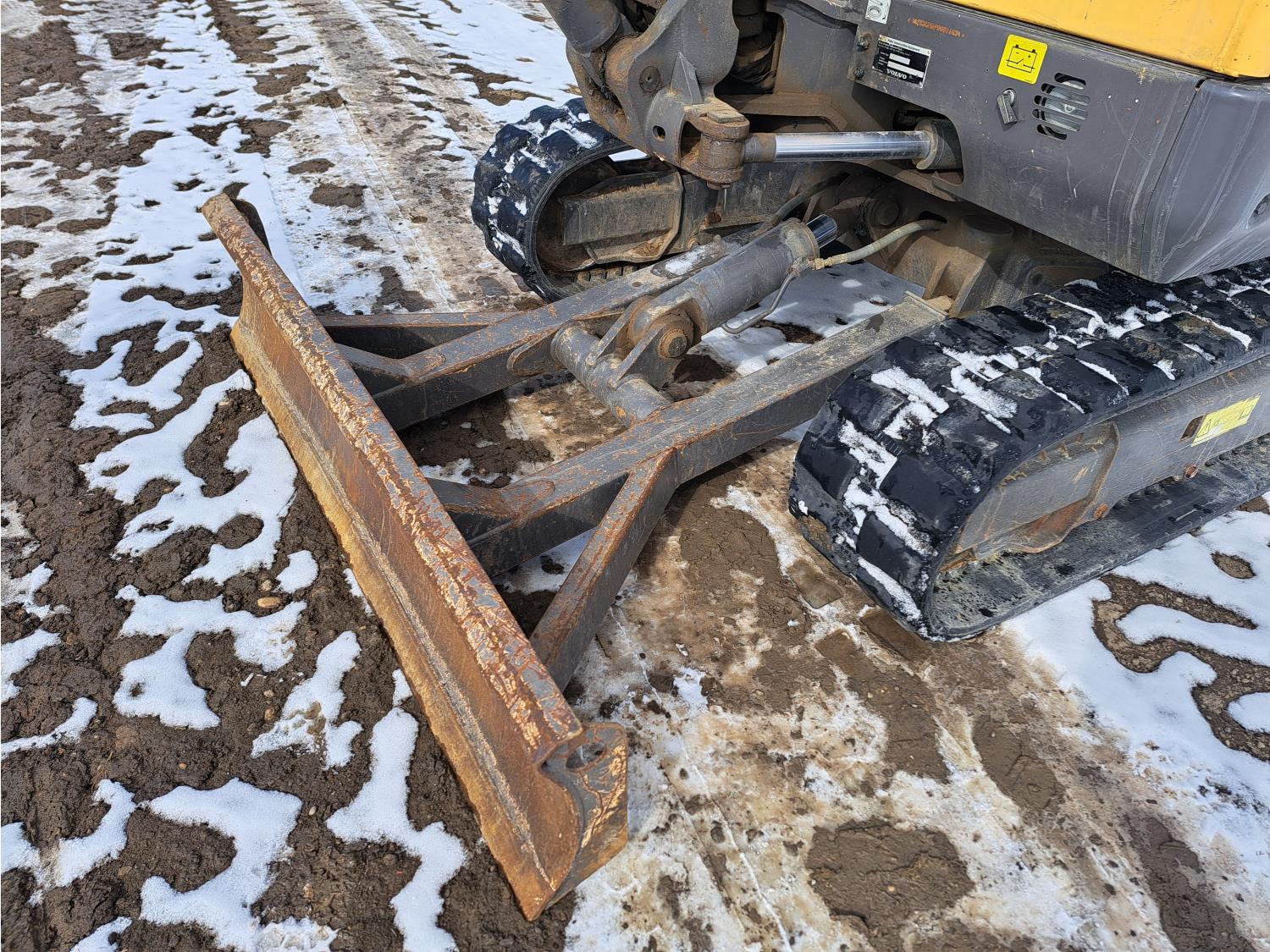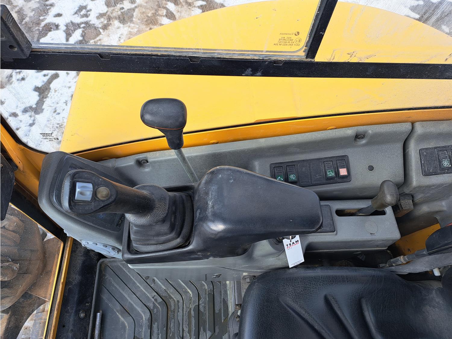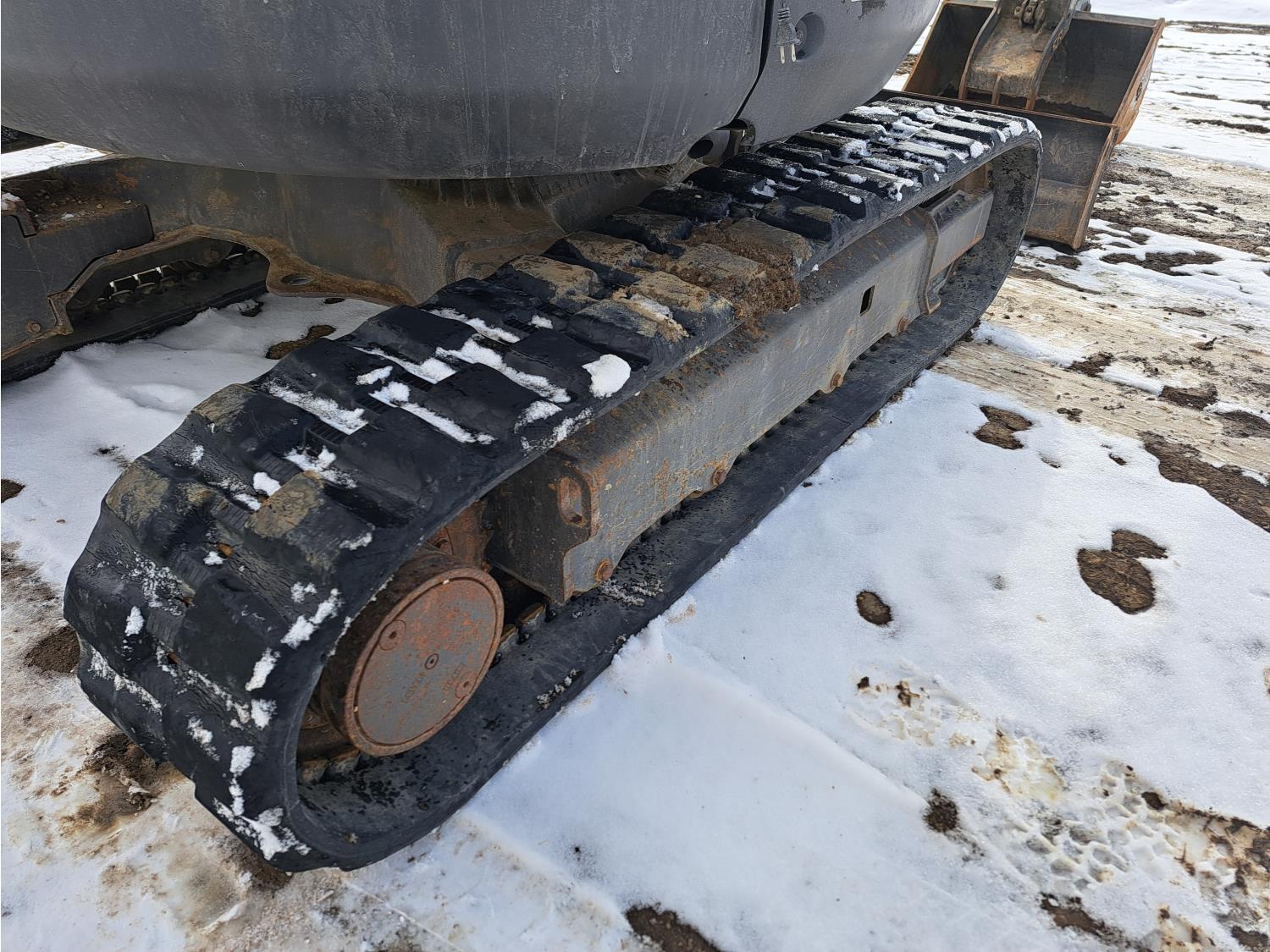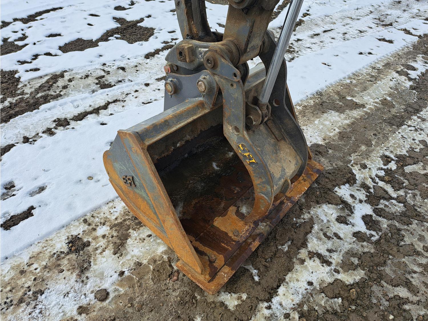 Enclosed cab, block heater, 36 inch cleanup bucket, manual coupler, hydraulic thumb, 1 auxiliary hydraulics, 49 inch stick, backfill blade, 24 inch dig bucket, 12 inch rubber tracks