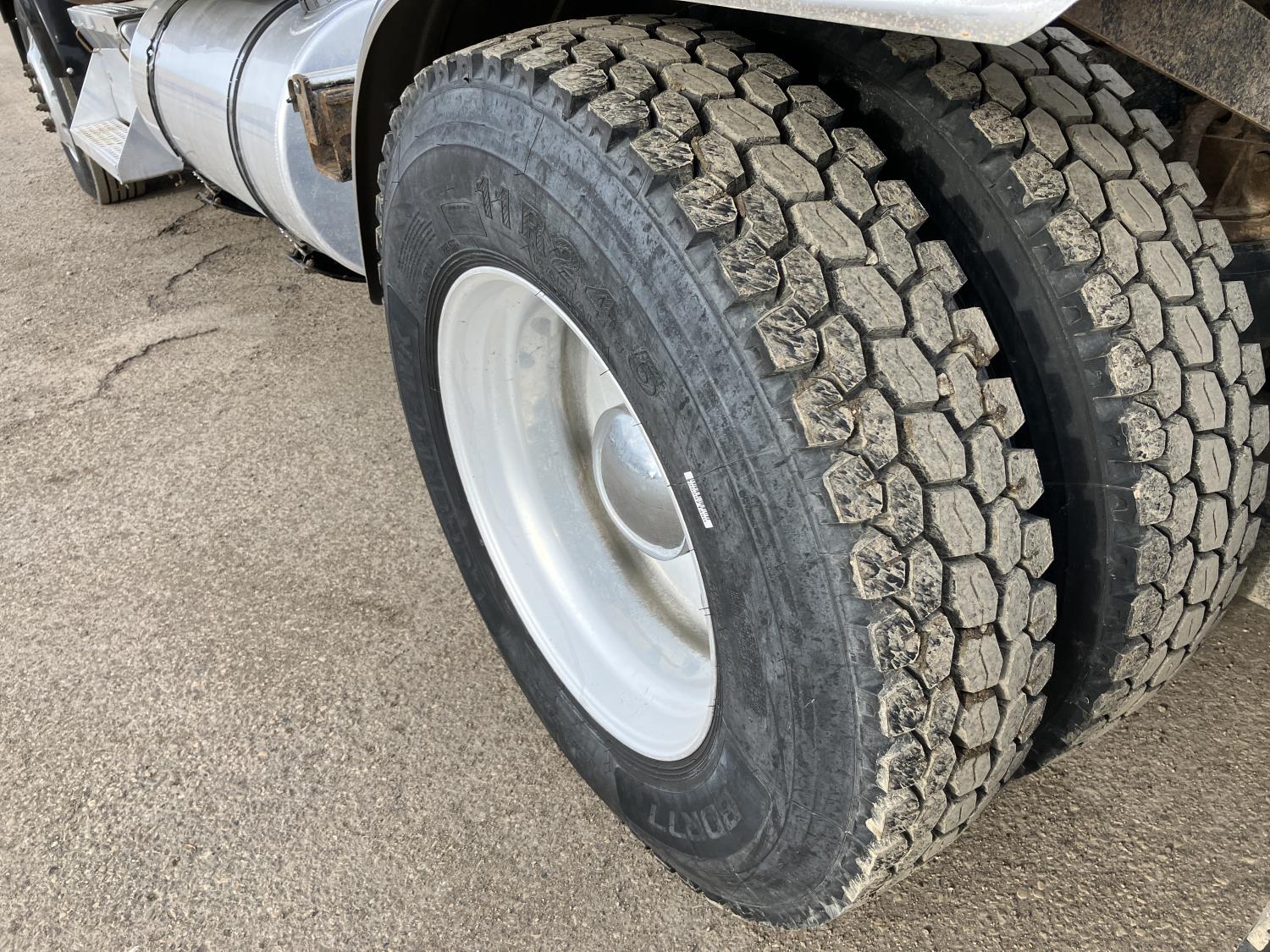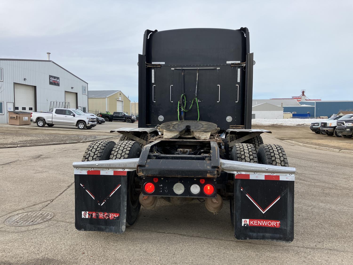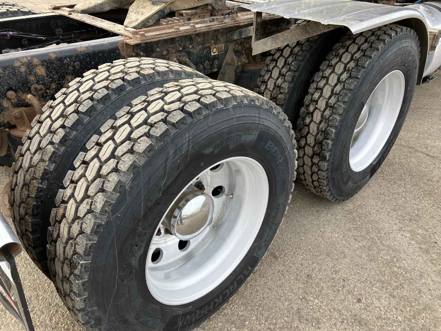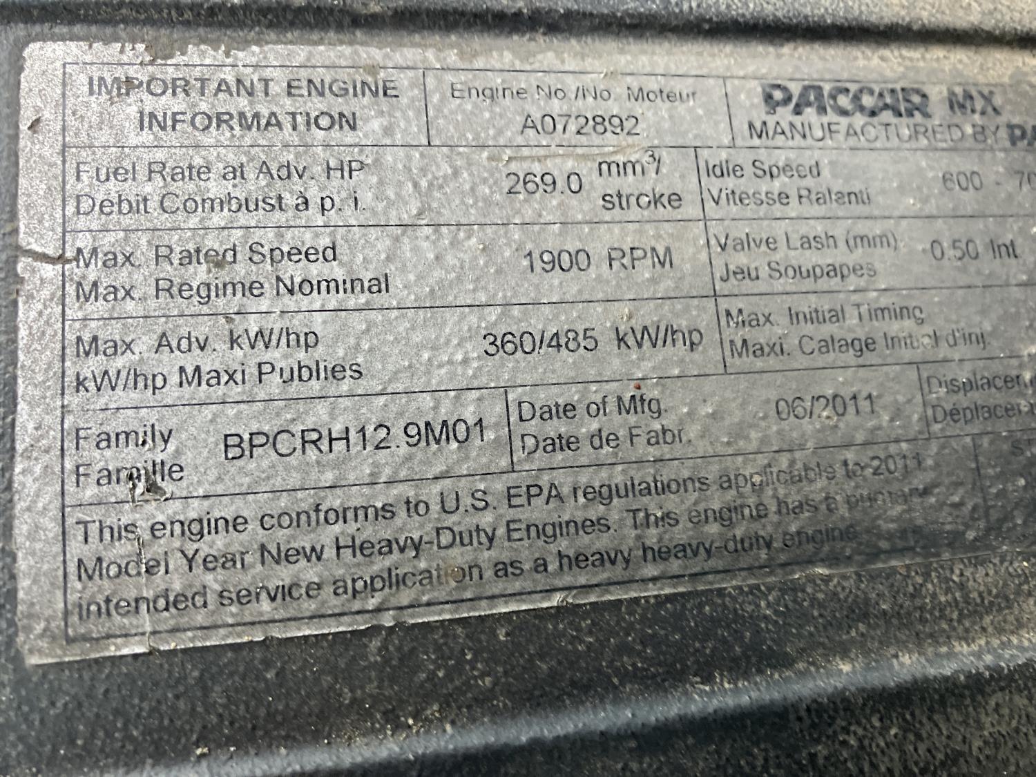 Paccar 12.9 L 6 cylinder 510 HP engine, engine block heater, positive air shutoff, Eaton Fuller 18 speed manual transmission, positive air shut off, Pro heat bunk heater cab heater, 72 inch Aero Cab studio bunk, sleeper, A/C, air ride driver seat, radio, VIT leather interior, air ride suspension, 12,000 lb front axle, 46,000 lb rear axles, full lockers, 3.90 ratio, all aluminum wheels, 11R24.5 front tires