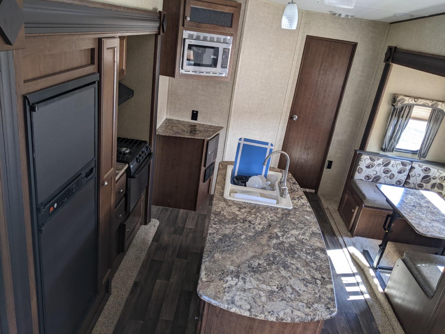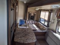 Sleeps 6, stove, fridge, microwave, full bath, master bedroom, bunk beds, A/C, outdoor kitchen, outdoor shower, 2 slides, power awning, power levelling jacks, spring suspension, electric brakes, (2) 30lbs propane tanks, radio, tv, comes with dishes and appliances, 225/75R15 tires