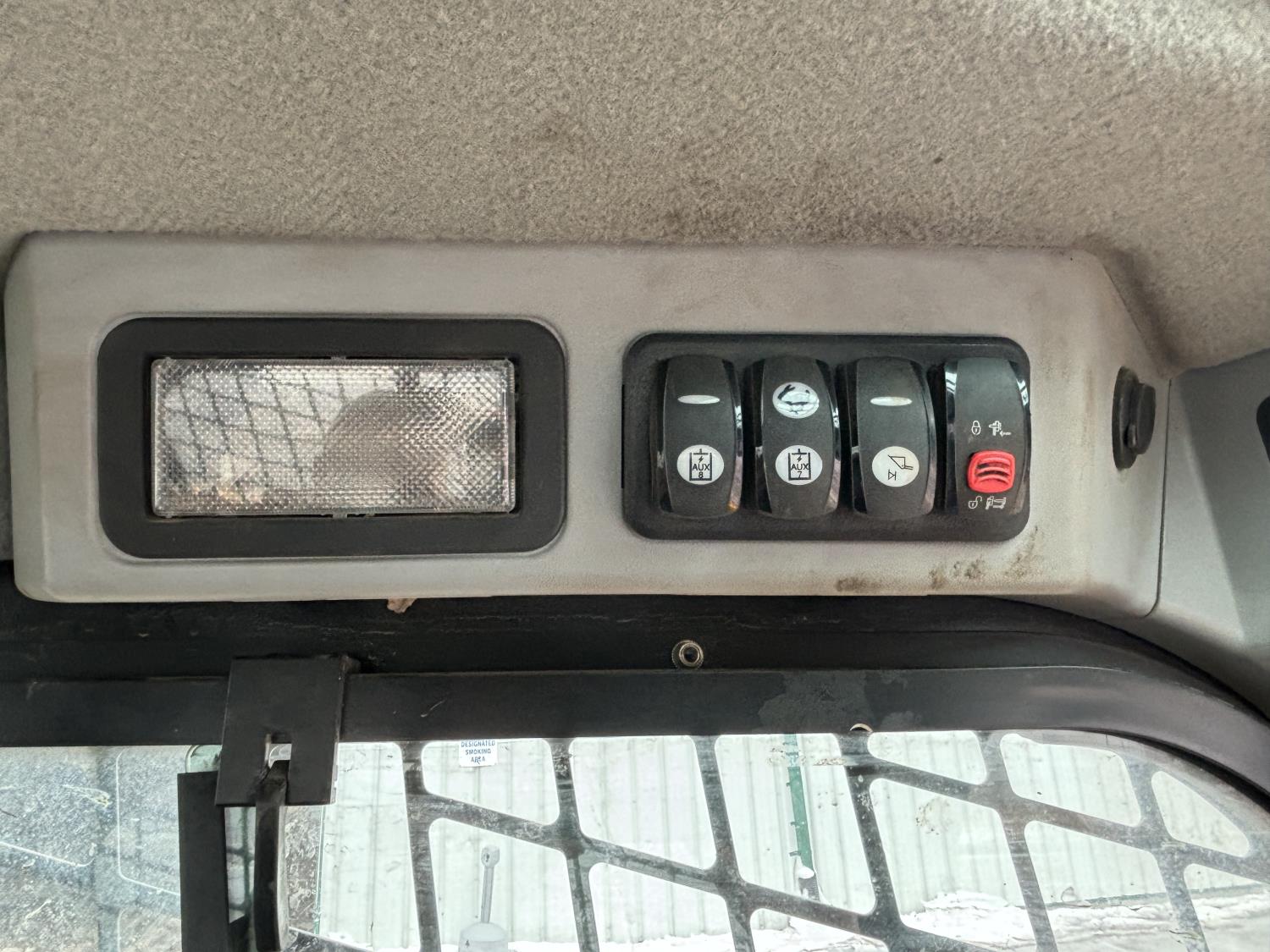Enclosed cab, A/C, air ride seat, ride control, rear view cameras, diesel engine, 2 speed transmission, cab screens, Vertical Lift Design, 84 inch bucket, manual coupler, 1 auxiliary hydraulics, high flow hydraulics, Dual Direction Self Level, 18 inch rubber tracks