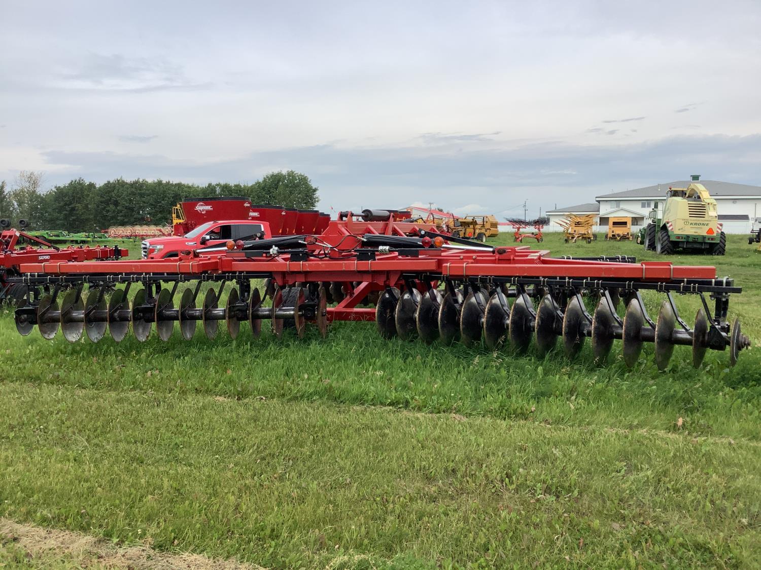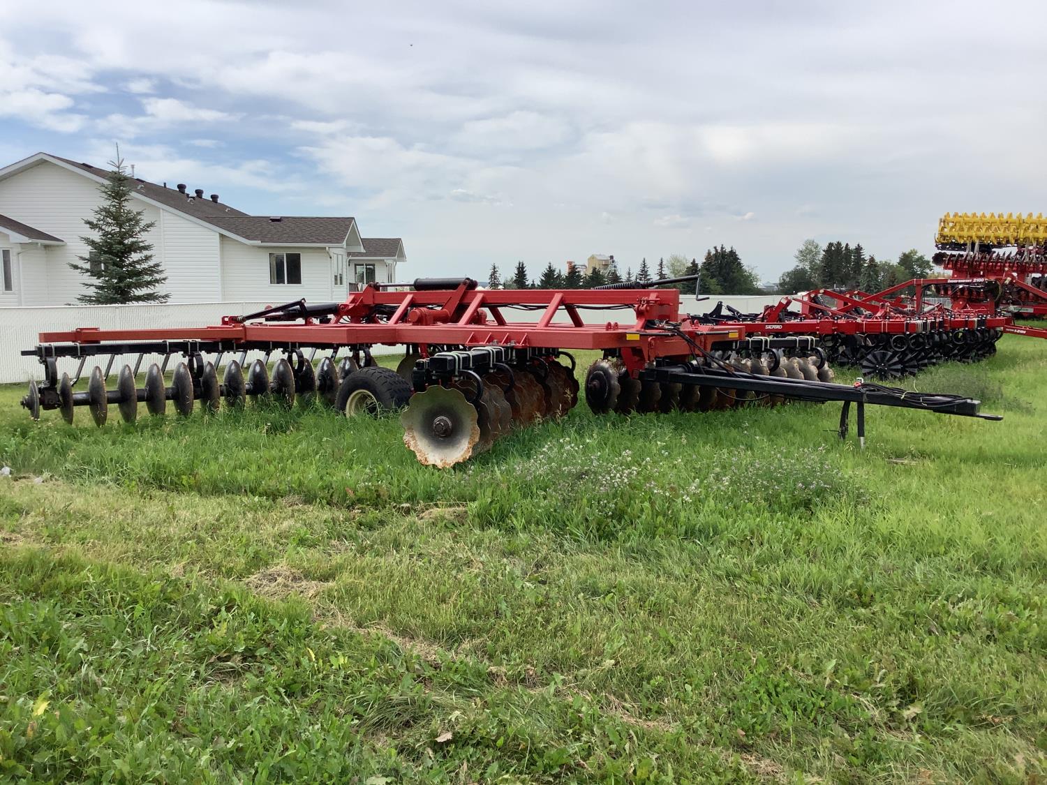 This disc has done approximately 400 acres. Max bought it to work up a piece of new land. This disc was one of the last that was built in Vegreville at the old Ezee-On factory just before it closed and was a demo unit. The disc cuts the ground very well and will be folded up in transport. Trucking is available at a extra cost.