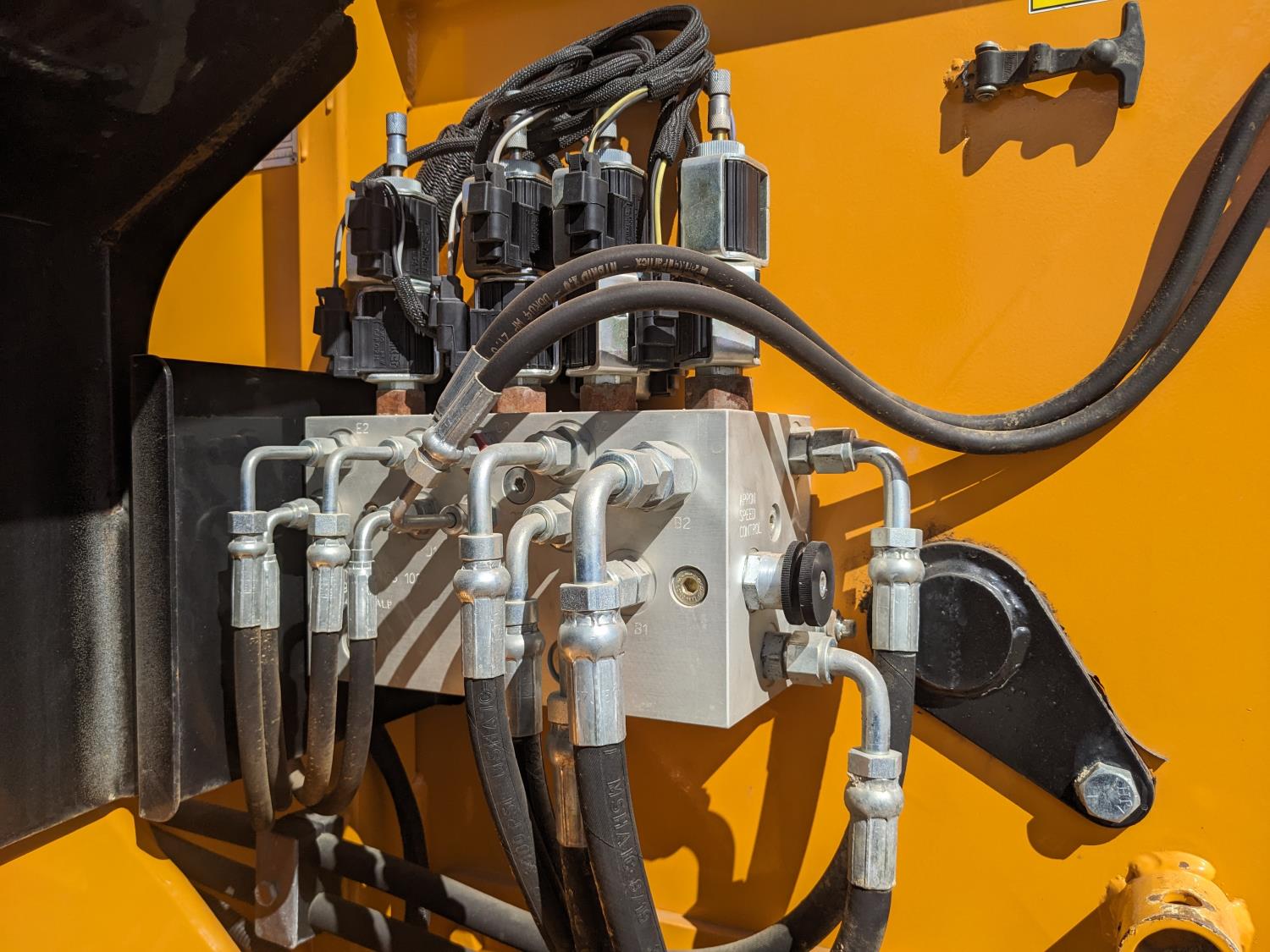 1000 PTO, rear bale loader, top discharge bale processor with blower, 125 HP, 16.5L-16 tires