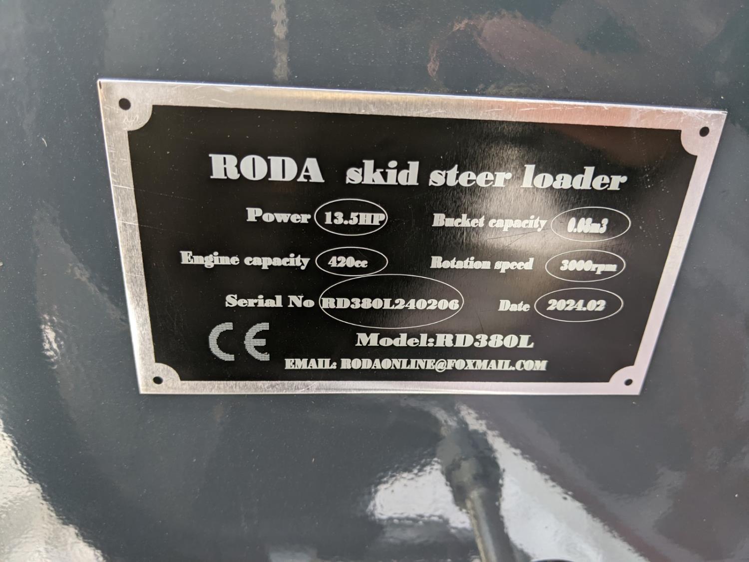 232 2024 Roda RD380L Mini Stand On Skid Steer (Unused)