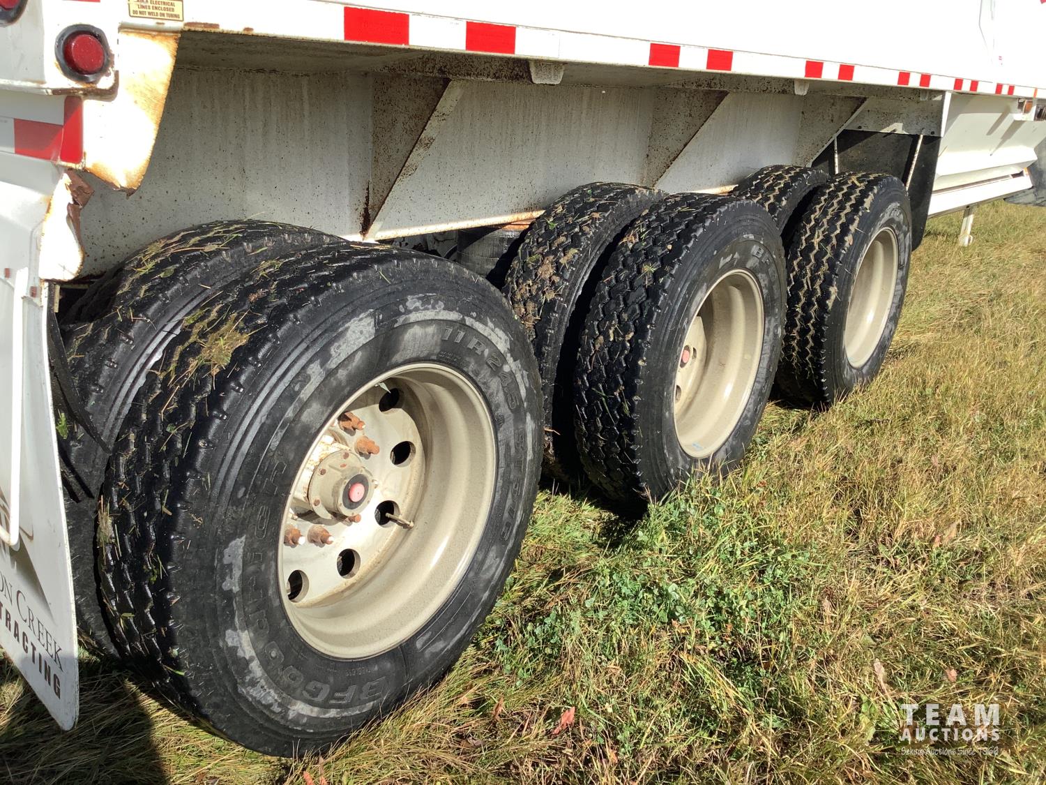 8 ft 6 inch box width, 52 inch side wall height, Electric roll tarp, push block, air ride suspension, cab remote for tarp, close under load, Tri-drive neck, all aluminum wheels, 11R24.5 tires