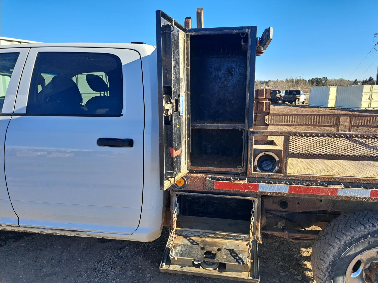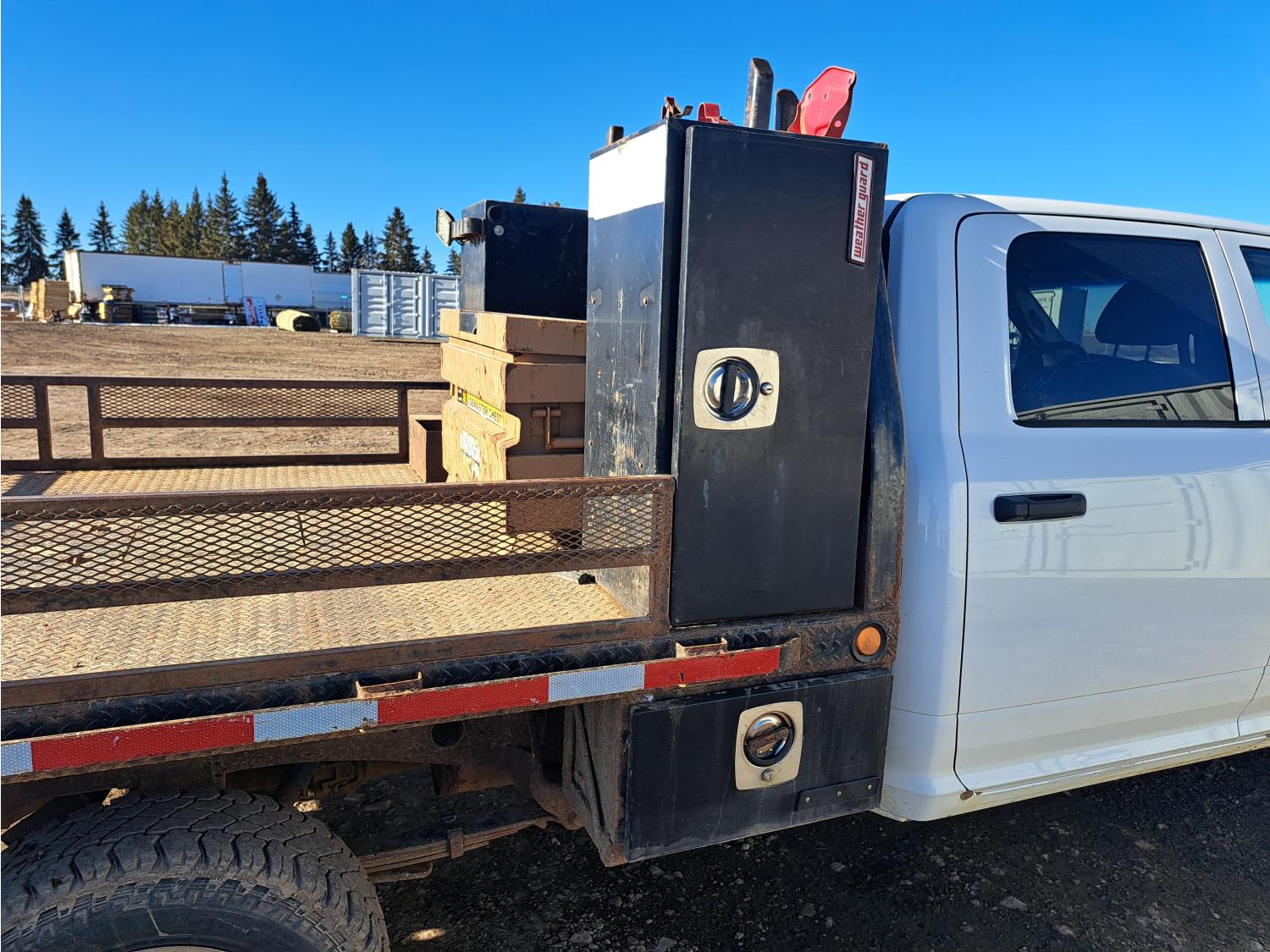 5.7 L, V8, gas, 6 speed automatic transmission, P/W, P/L, A/C, steel headache rack, steel box rails, steel toolbox, Pwr mirrors, radio, tow haul mode, trailer brake control, cruise control, 8 Ft x 80 inch CM deck, fixed sides, removeable gate, 36 inch x 19 inch x 20 inch metal Job Master tool box, (2) 3 Ft x 19 inch x 20 inch Weather Guard tool boxes, (2) 22 inch x 12 inch x 12 inch belly boxes, rear hitch receiver, LED work lights, front tow hooks, 170 inch wheelbase, rear spring suspension with added air bags, , 265/70R17 tires