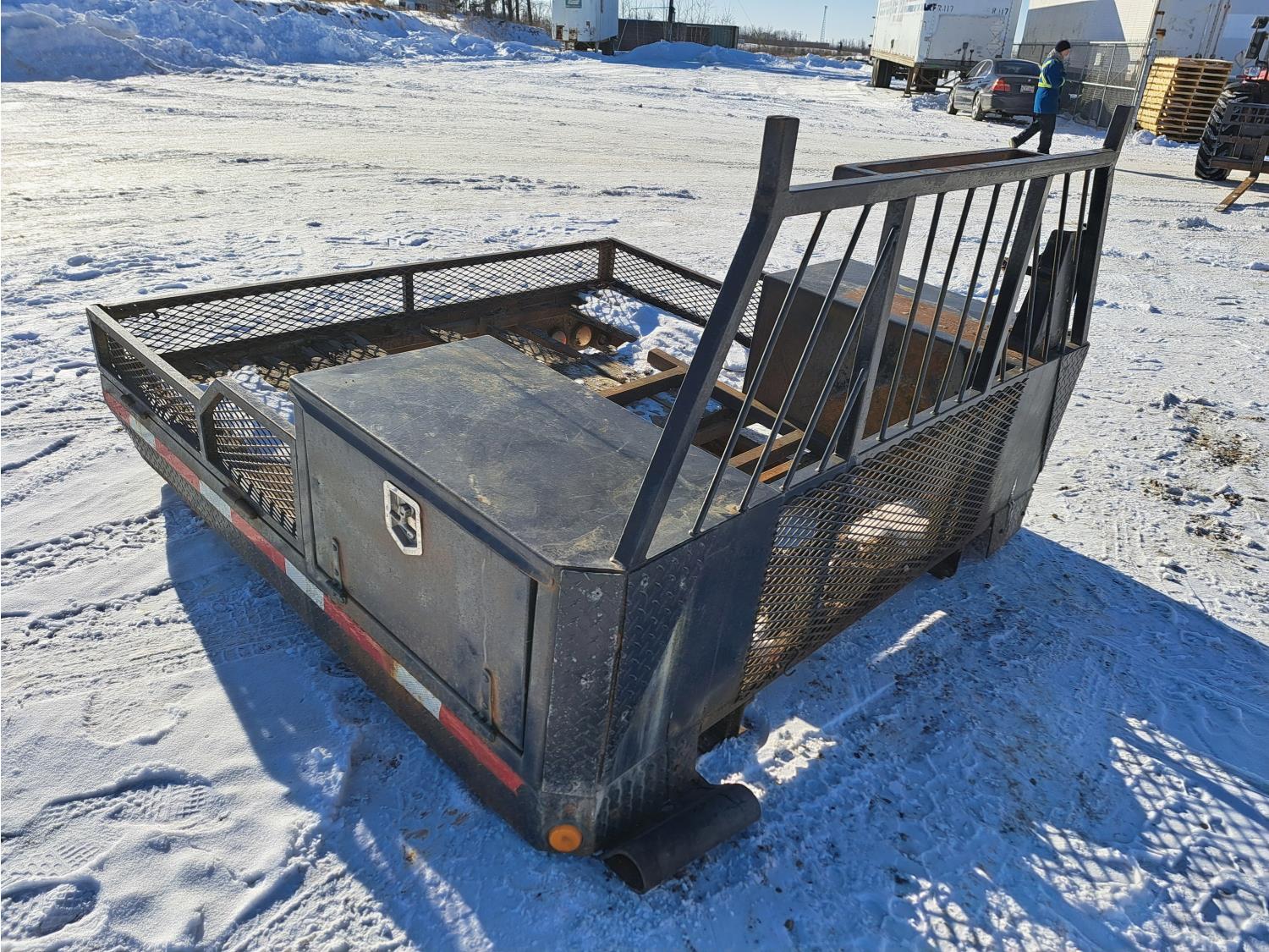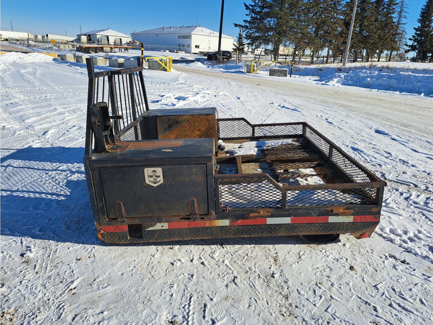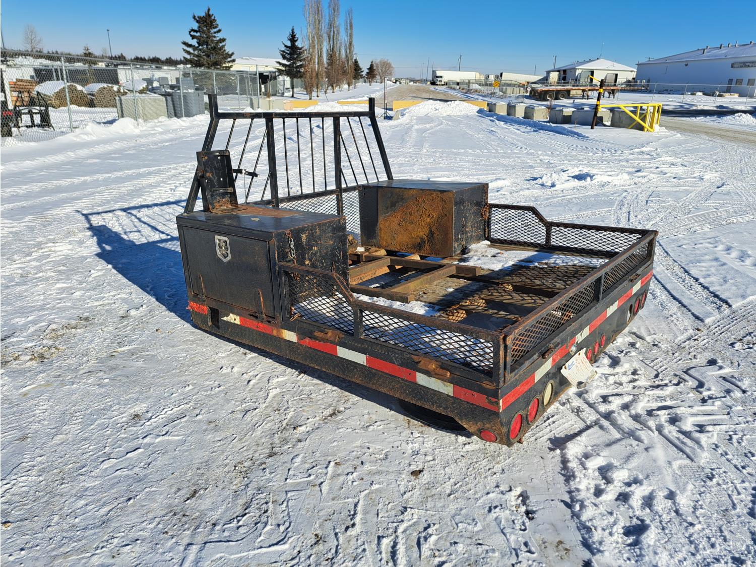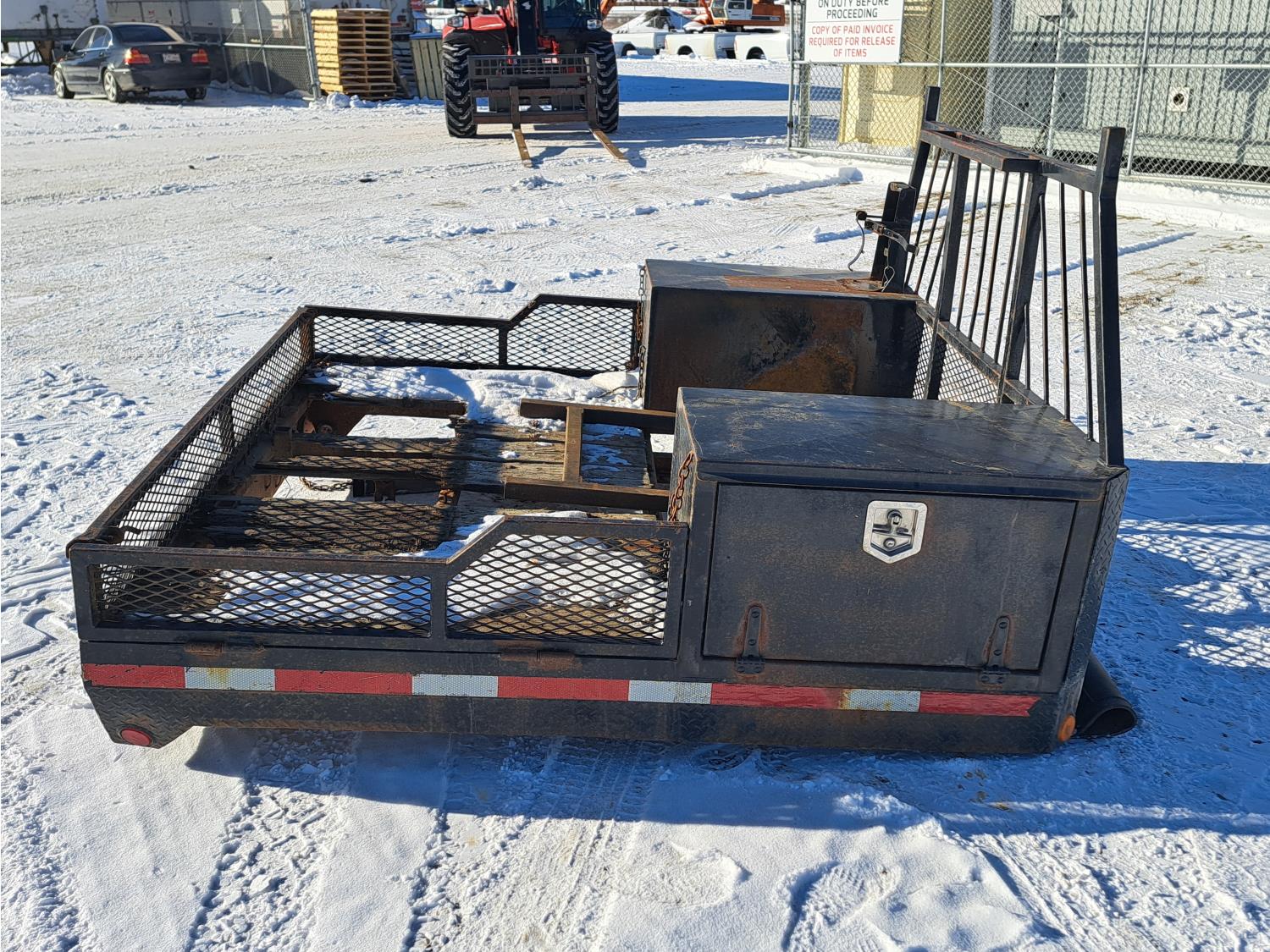 (2) deck mounted 20- inch-deep X 18-inch-high X 36-inch-wide storage cabinets, headache rack, fold down sides, taillights