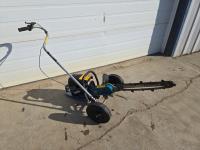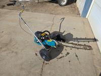 Starts and runs excellent. New this machine retails at about 5000.00 dollars. Excellent for trenching irrigation lines with little ground disturbance.