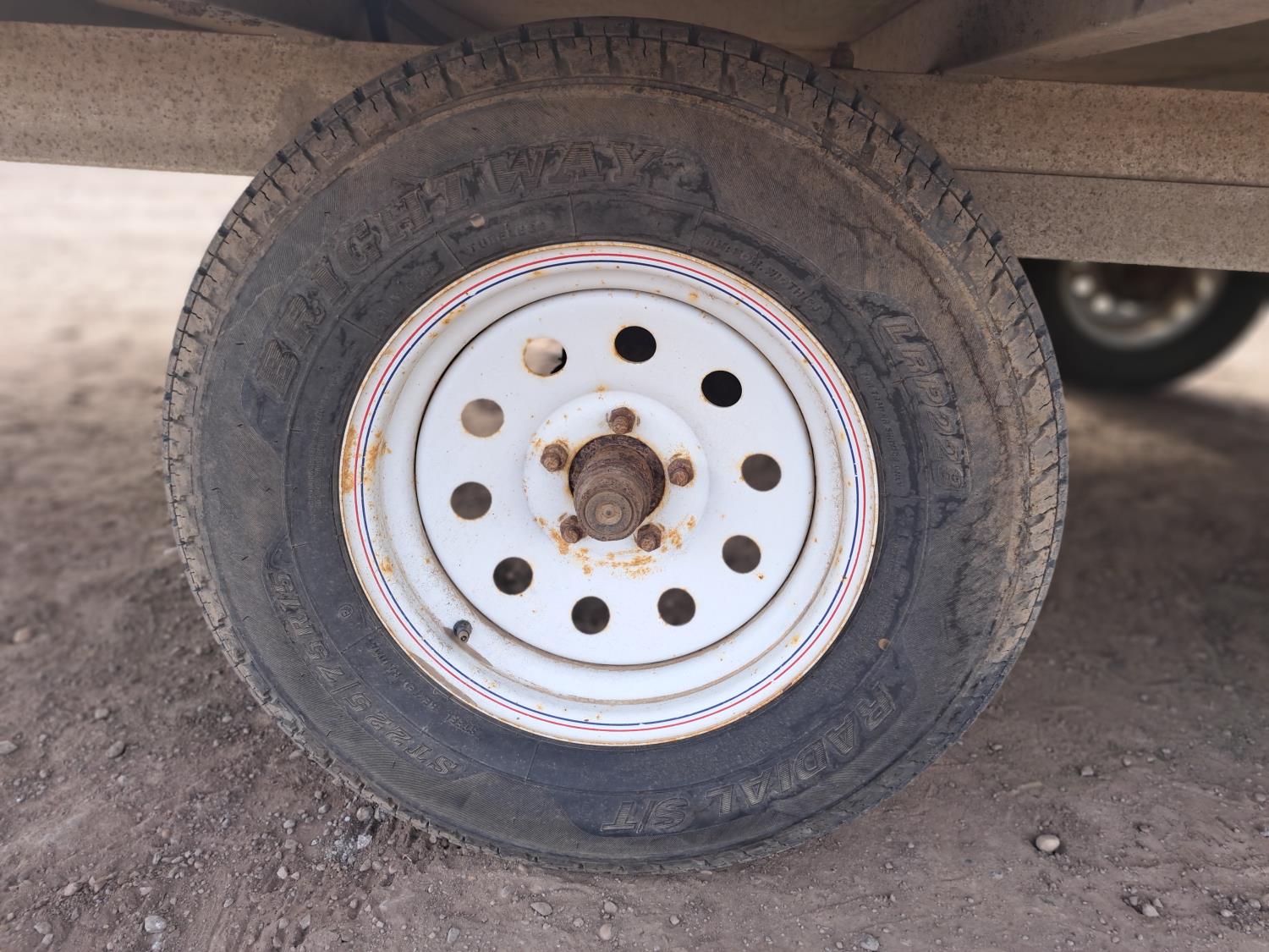 101 inch wide deck, wood deck, slide in ramps, electric brakes, torsion suspension, ball hitch, LED lights, fold down front ramps, 2 inch ball, 20 Ft deck plus 3 Ft V-nose, 2200 lb axles, 225/75R15 tires