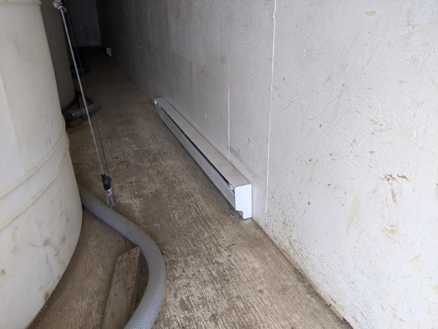 Heated and insulated, (2) pressure tanks, (2) pumps, (4) 1550 gallon tanks, 40 ft l x 10 ft w
