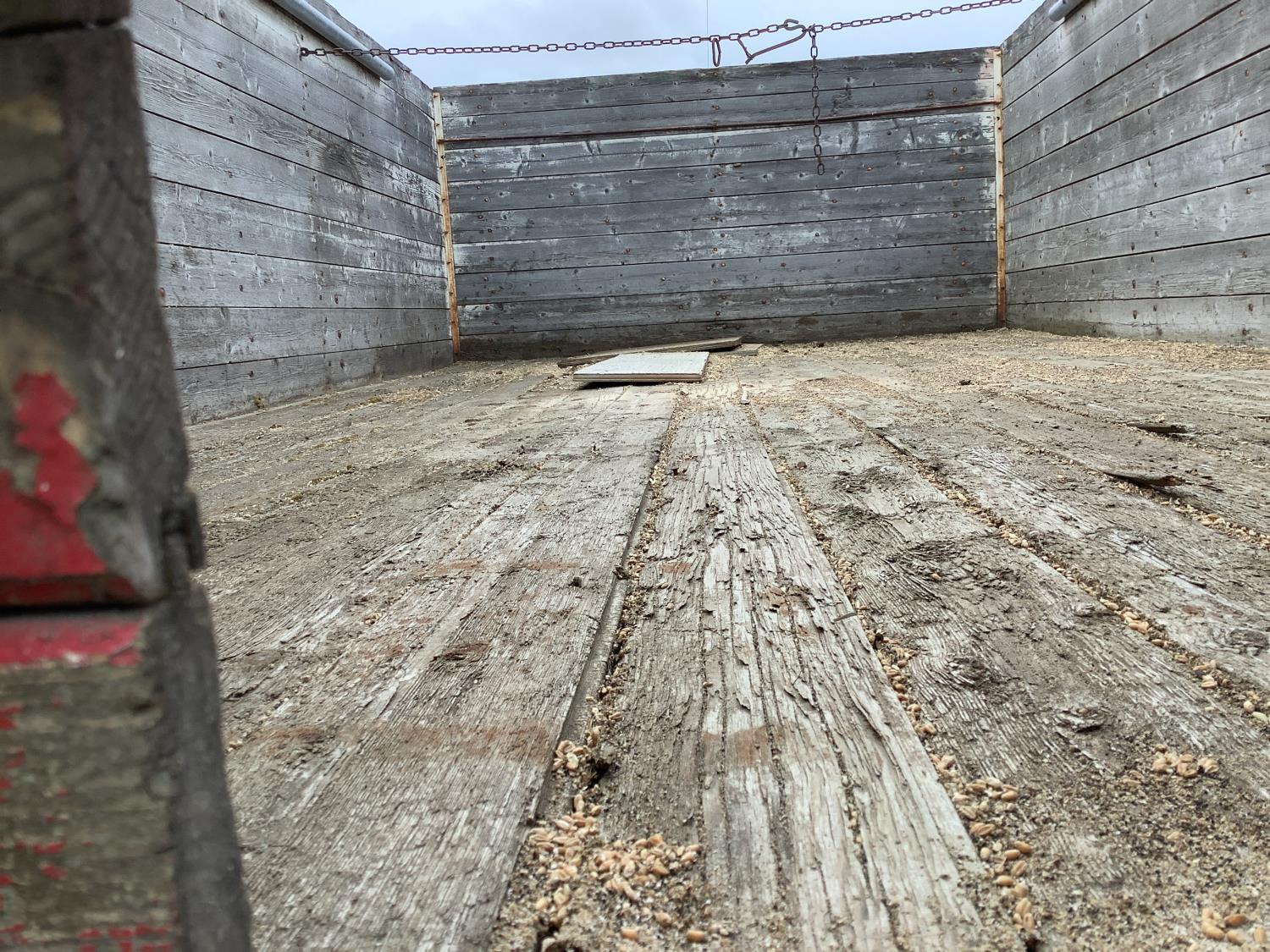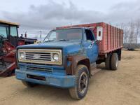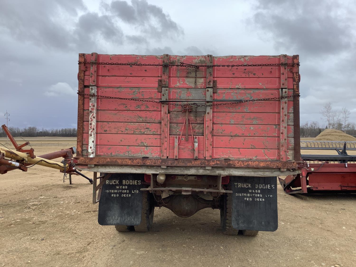 GMC 366 cu in V8 gas engine, 5X2 manual transmission, 16' wood box with hoist, hydraulic brakes, 7,000 lb front axle, 16,000 lb rear axles, 9.00-20 tires