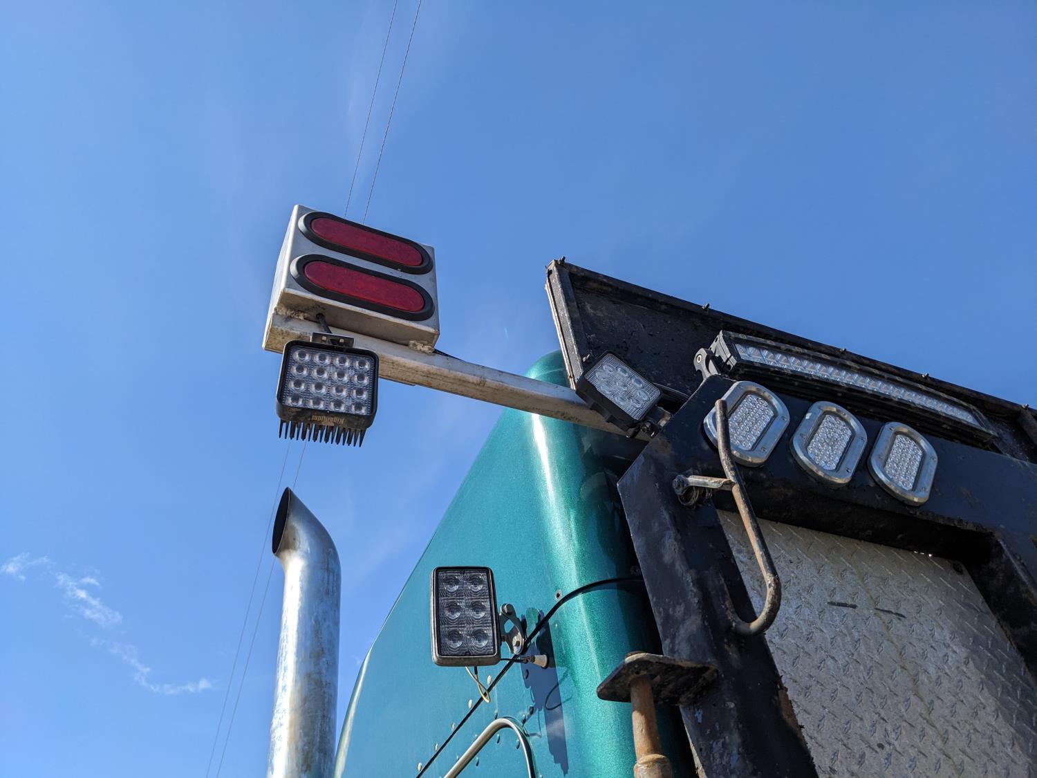 Caterpillar C15 diesel engine, Wabasto engine heater, engine brake, positive air shutoff, Eaton Fuller 18 speed manual transmission, mid rise 61 inch sleeper, A/C, cruise control, air ride seats, radio, cell booster, 2 Way hydraulic wet kit, Bandit Bar aluminum moose bumper, headache rack, tool boxes, chain holders, full deck w/ fenders, Rufnek 30 T hydraulic winch, air slide wide load sign, wide load lights, strobe lights, rear live roll, Neway air ride suspension, 16,000 lb front axle, 46,000 lb rear axles, full lockers, 4:10 ratio, 244 inch WB, all aluminum wheels, 385/65R22.5 front tires, 11R24.5 rear tires