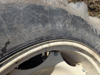 Allied 695 loader, bucket, grapple, bale forks, 4 cylinder diesel engine, 18 speed manual transmission, cab, rear differential lock, joystick, A/C, radio, 540 PTO, 3 point hitch, 2 rear hydraulic outlets, rear wheel weights, 13.6-24 front tires, 18.4R38 rear tires