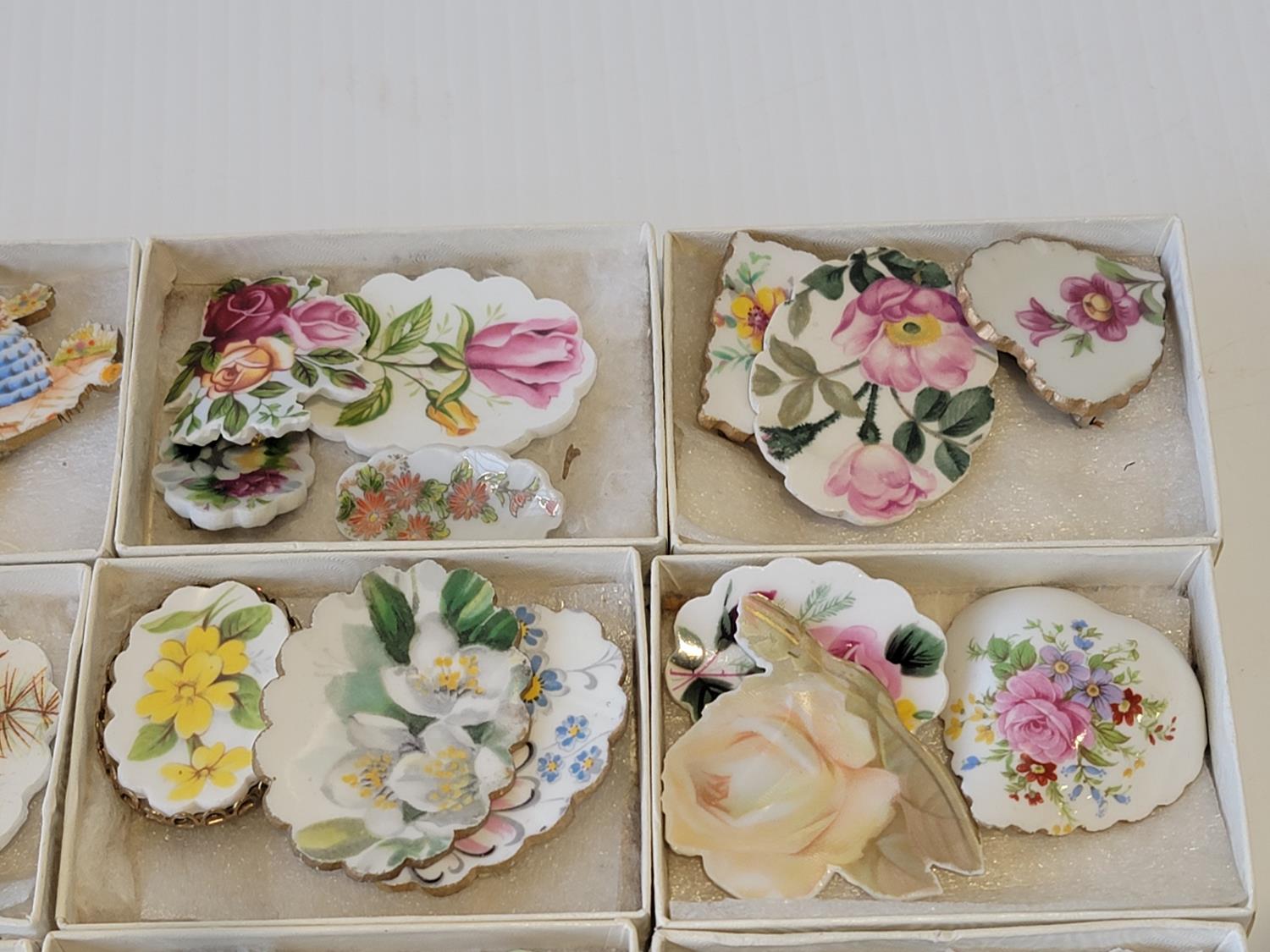 2088 (12) Boxes of Porcelain Broches
