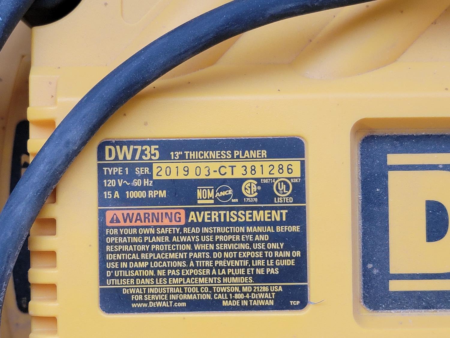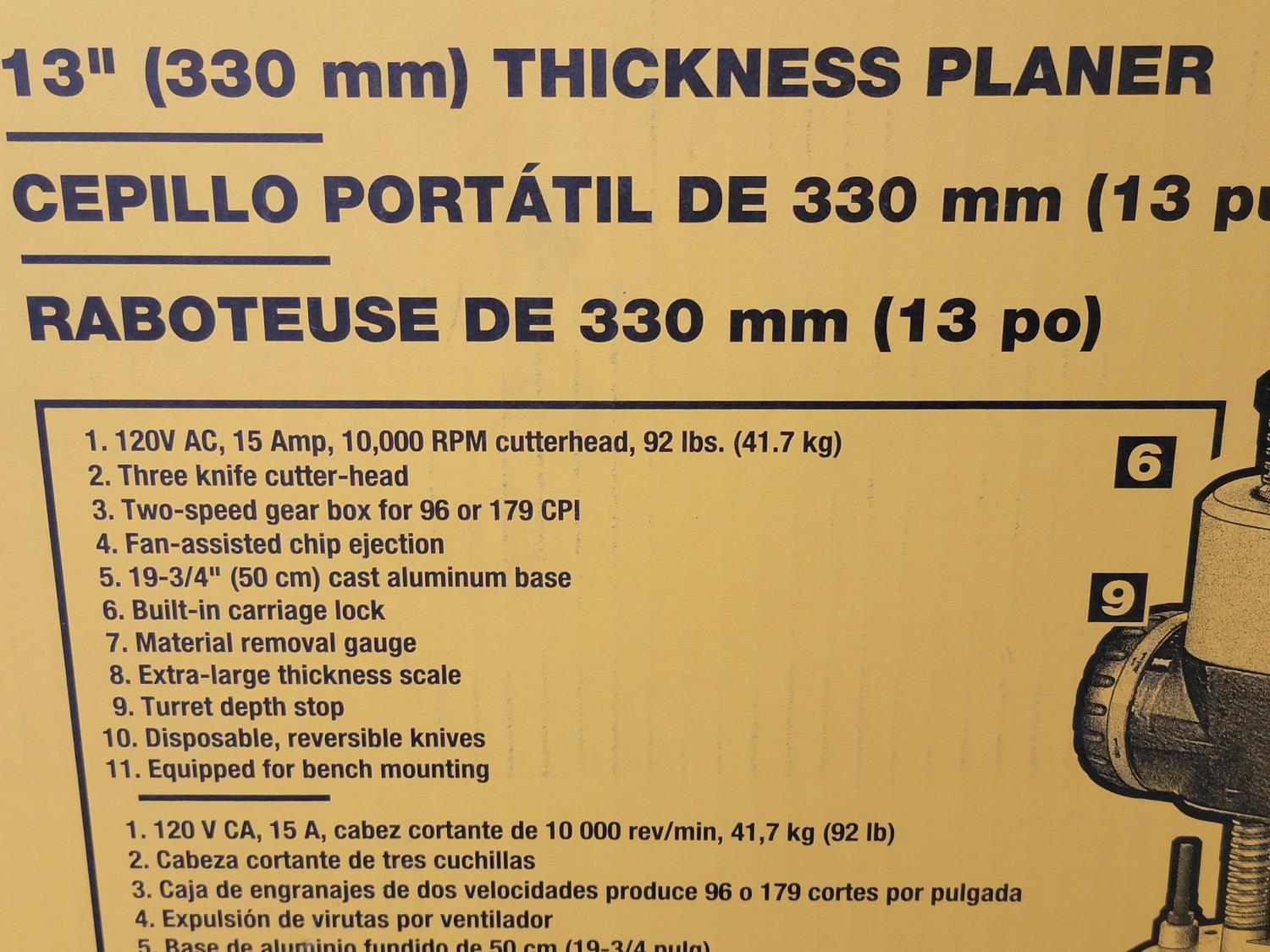 1557 DeWalt 13 Inch Thickness Wood Planer with Dust Bag