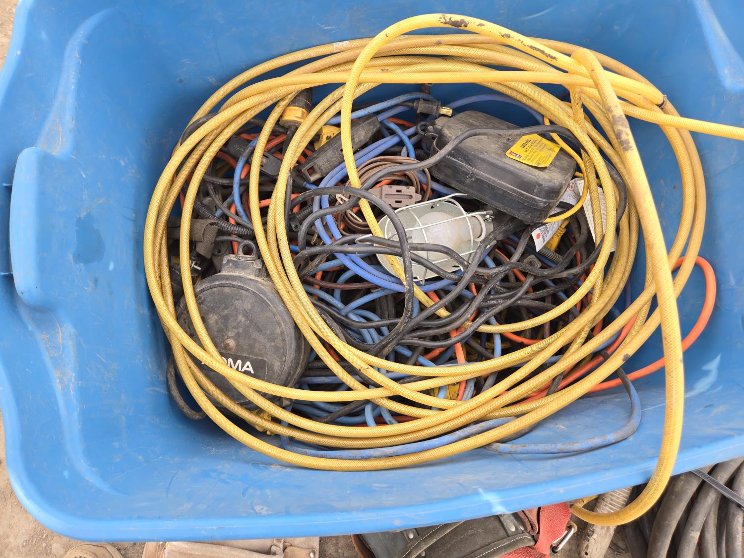 2604 (2) Tool Belts, Qty of Trouble Light & Extension Cords, Mig Welder Cords with Nozzles