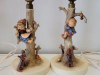 (2) hummel lamps, (2) antique cranberry glass lamps
