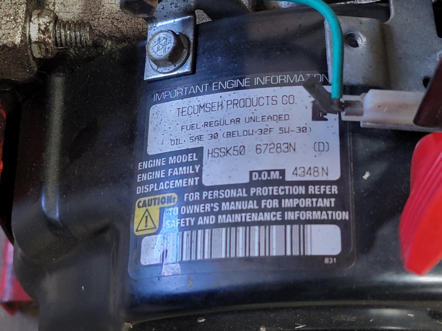 1466 Tecumseh HSSK50 67283N 5.0 HP engine