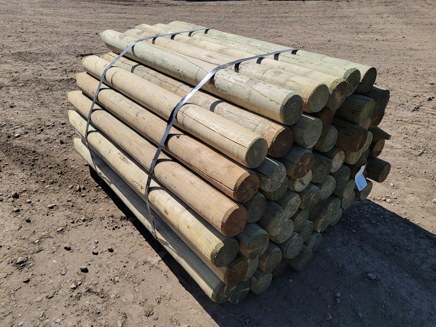 2171 (64) 5-1/4 Inch X 6 Ft Treated Dowel Fence Posts (Unused)