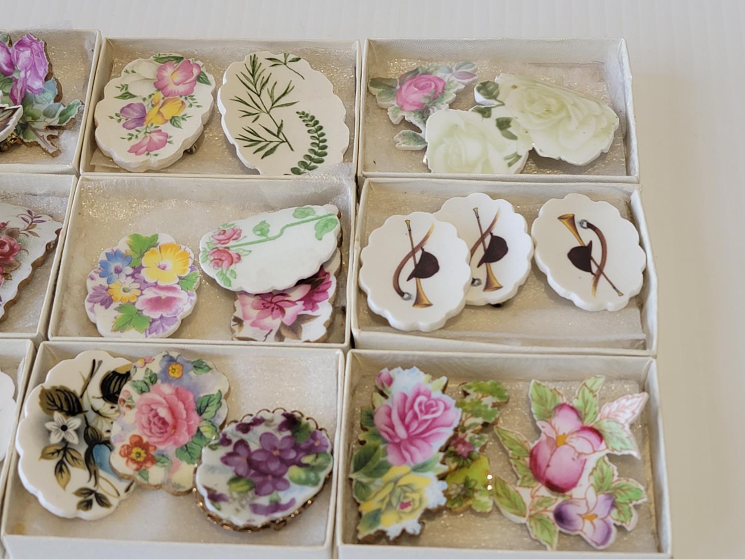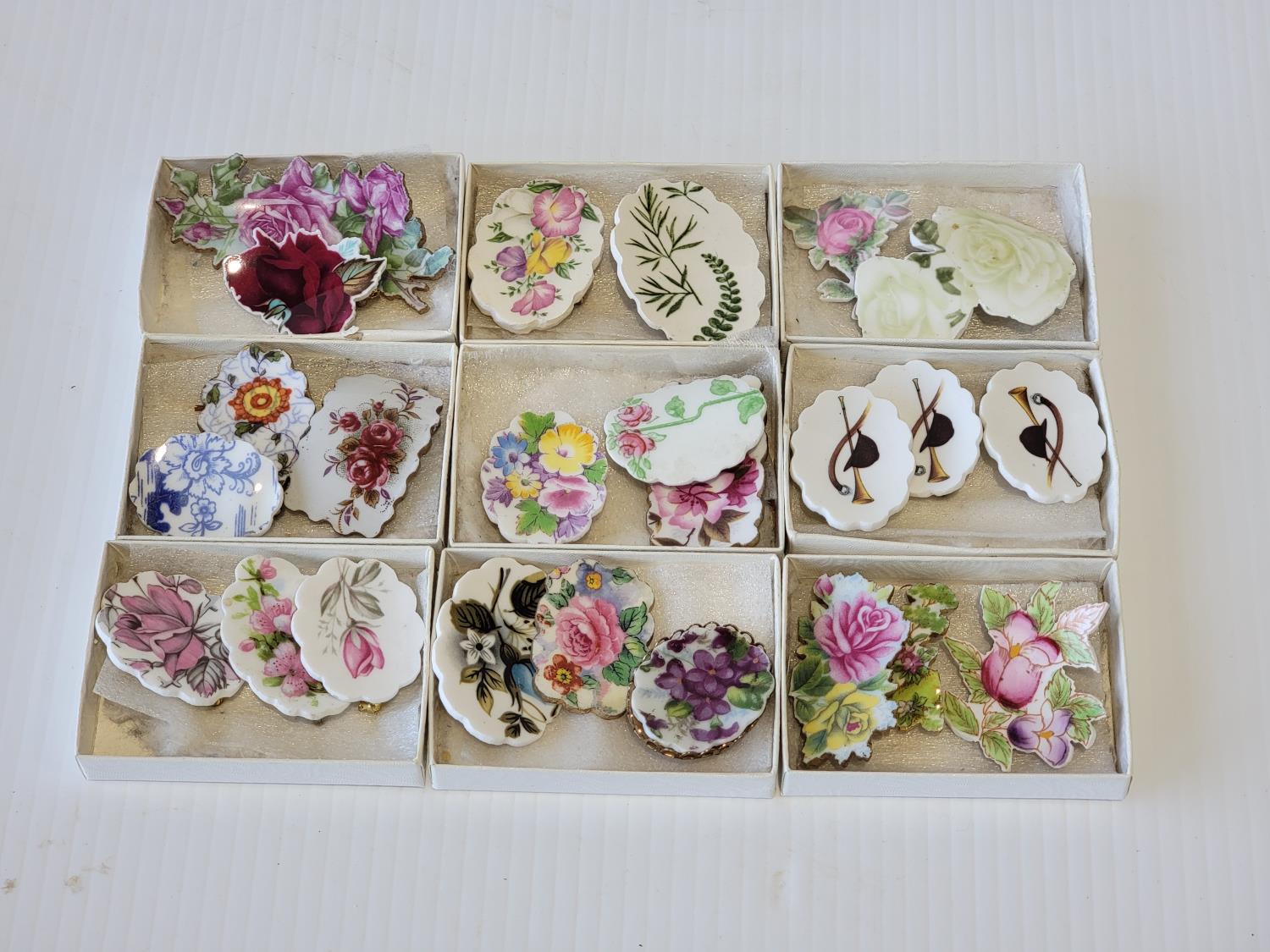 2087 (9) Boxes of Porcelain Broches
