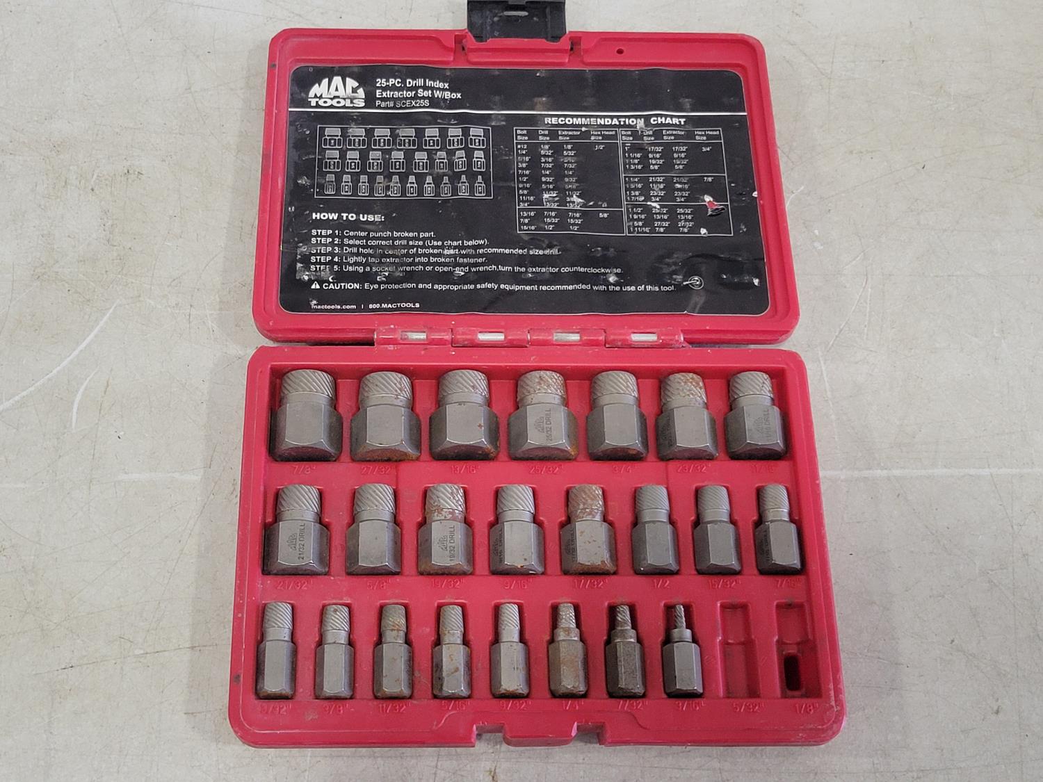 1190 Mac Tools Extractor Set and Drill Bits