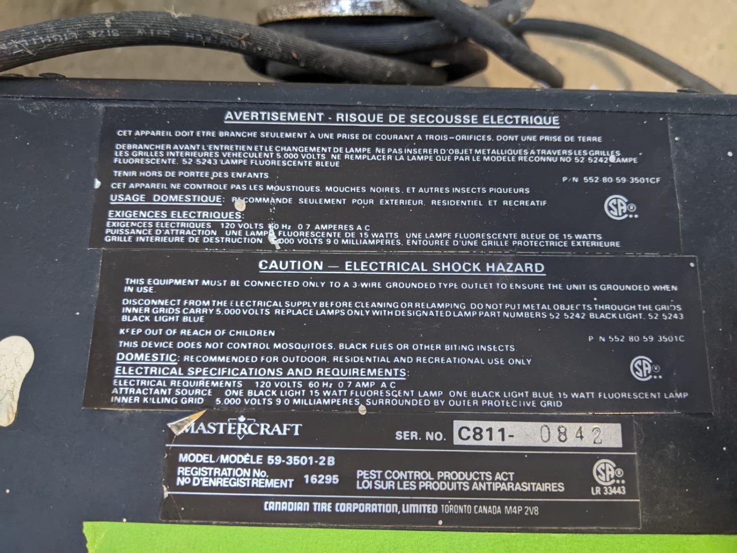 1017 Mastercraft 59-3501-2B Bug Zapper