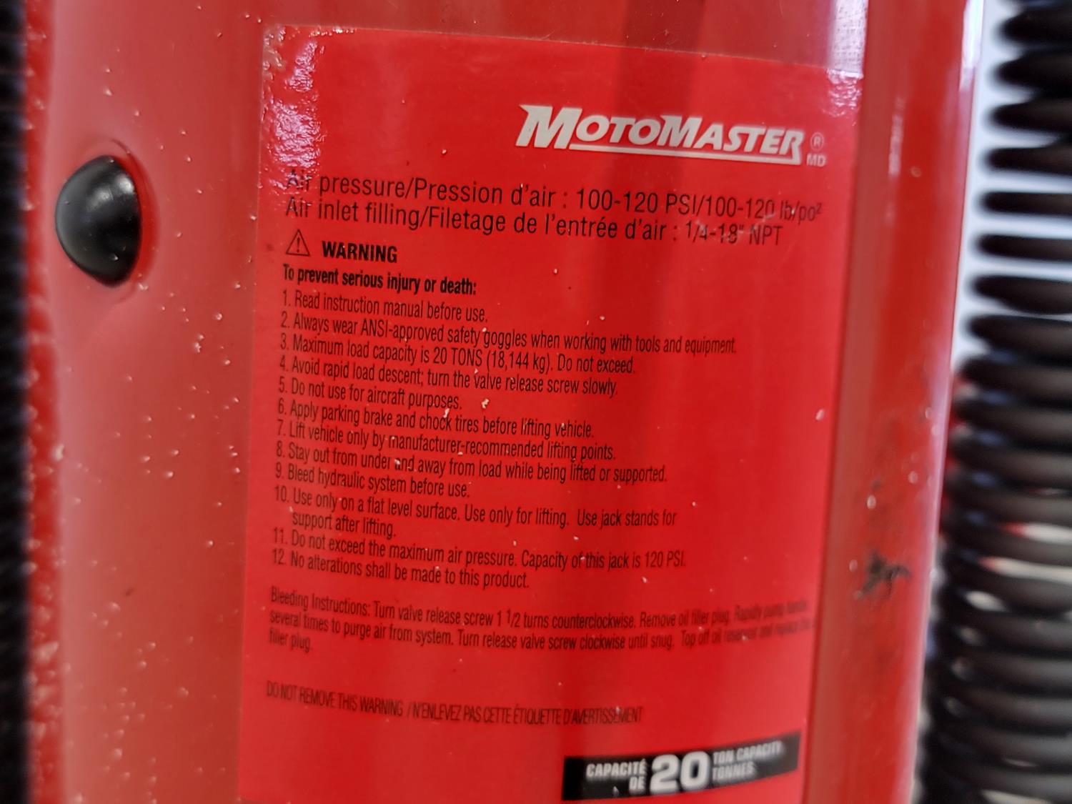 1488 Motomaster Hydraulic/Pneumatic 20 Ton Jack
