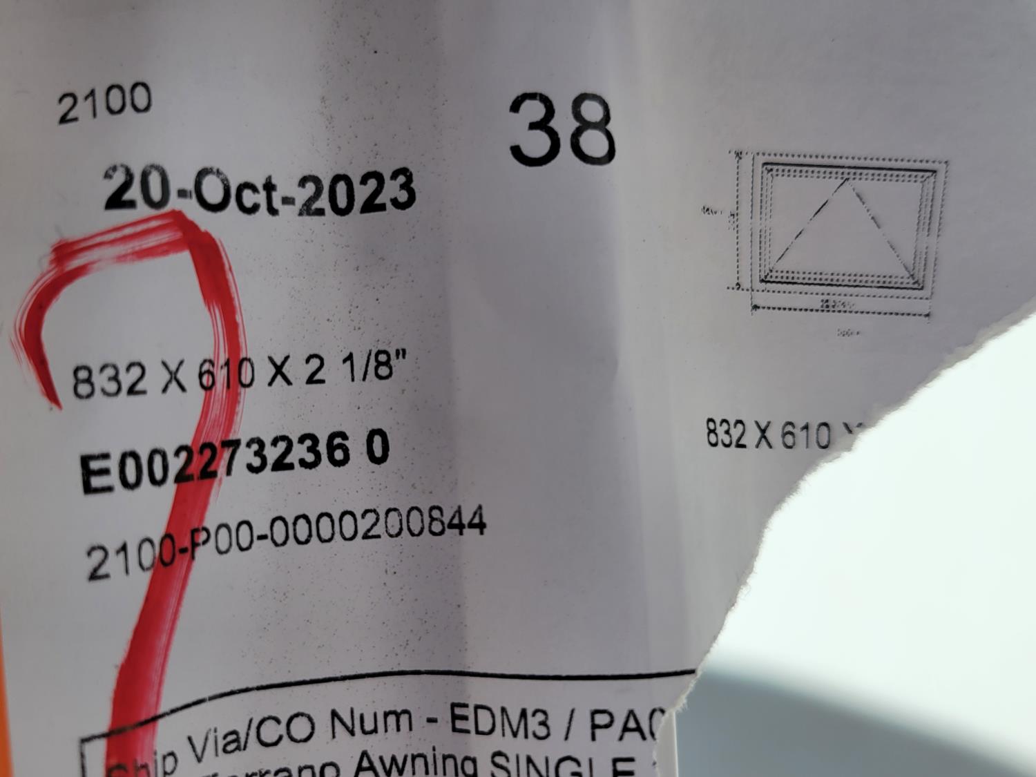 2250 PVC Awning Window (Unused)