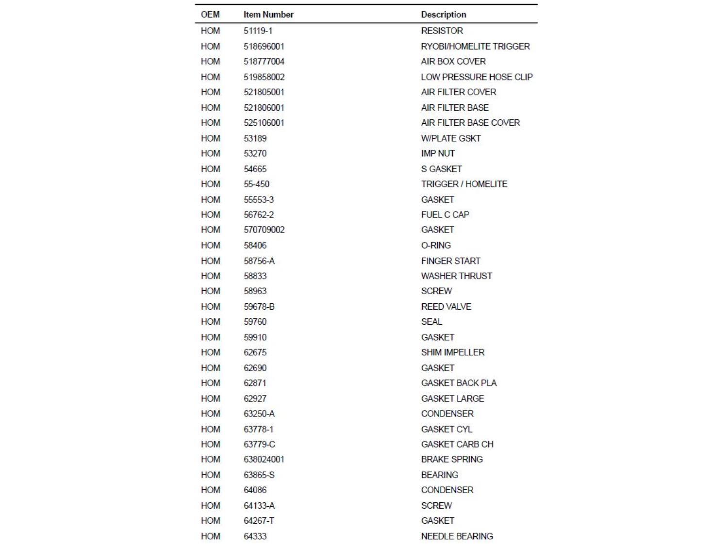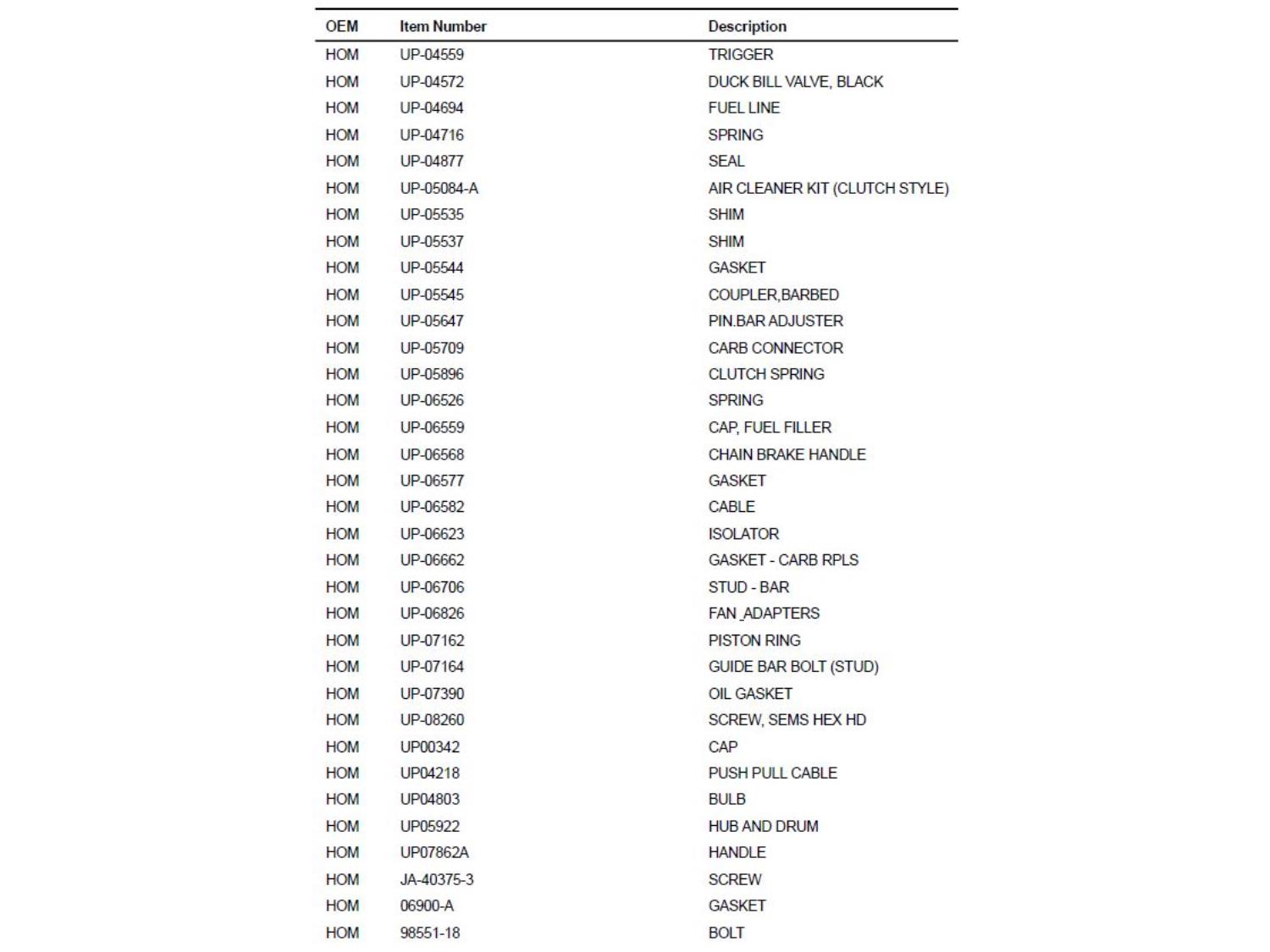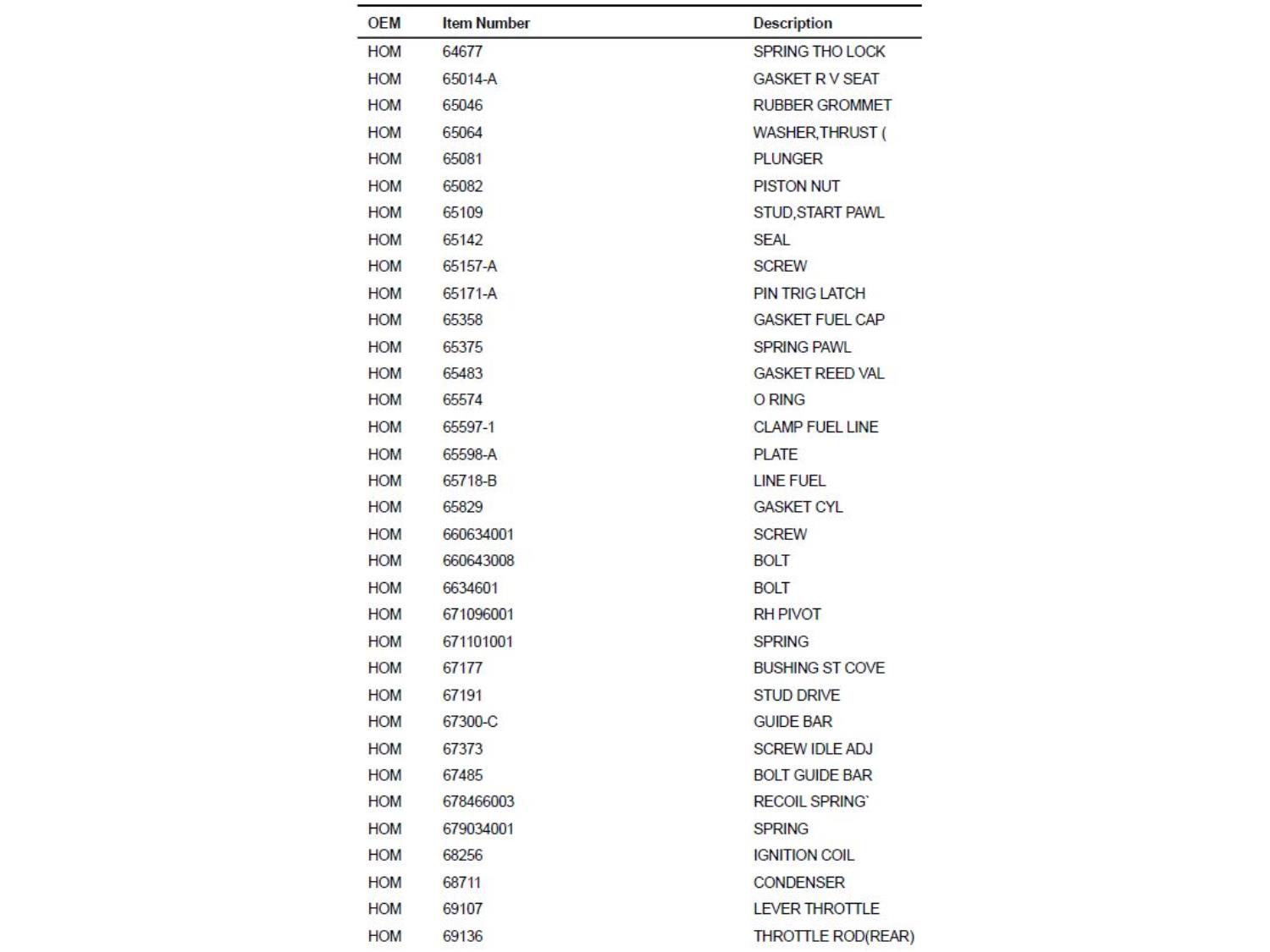 1252 Qty of Homelite Small Engine Parts (Unused)