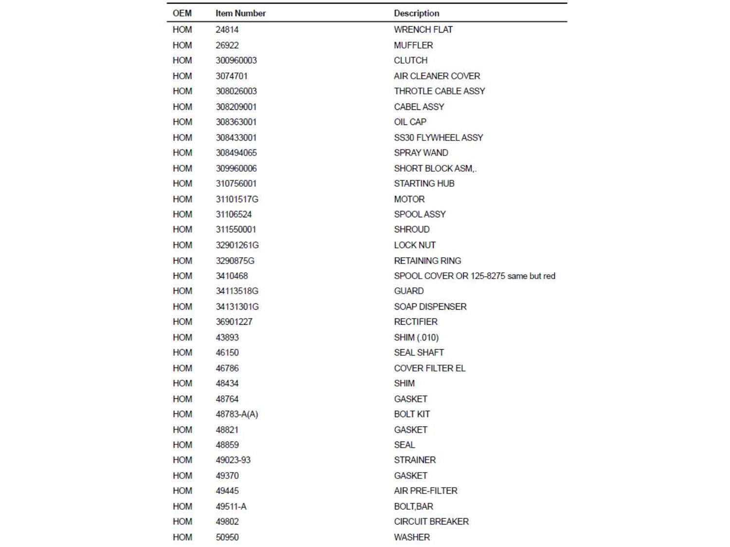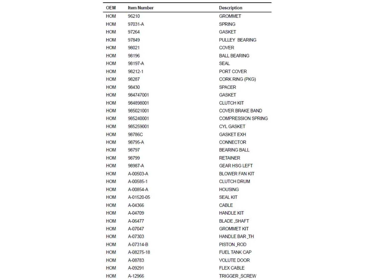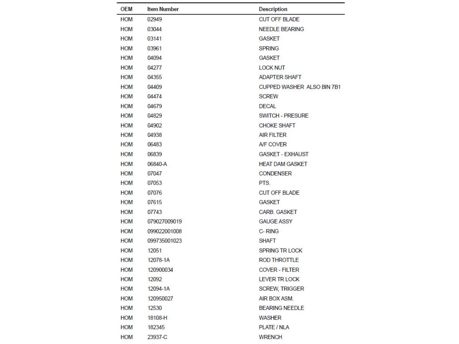 1252 Qty of Homelite Small Engine Parts (Unused)