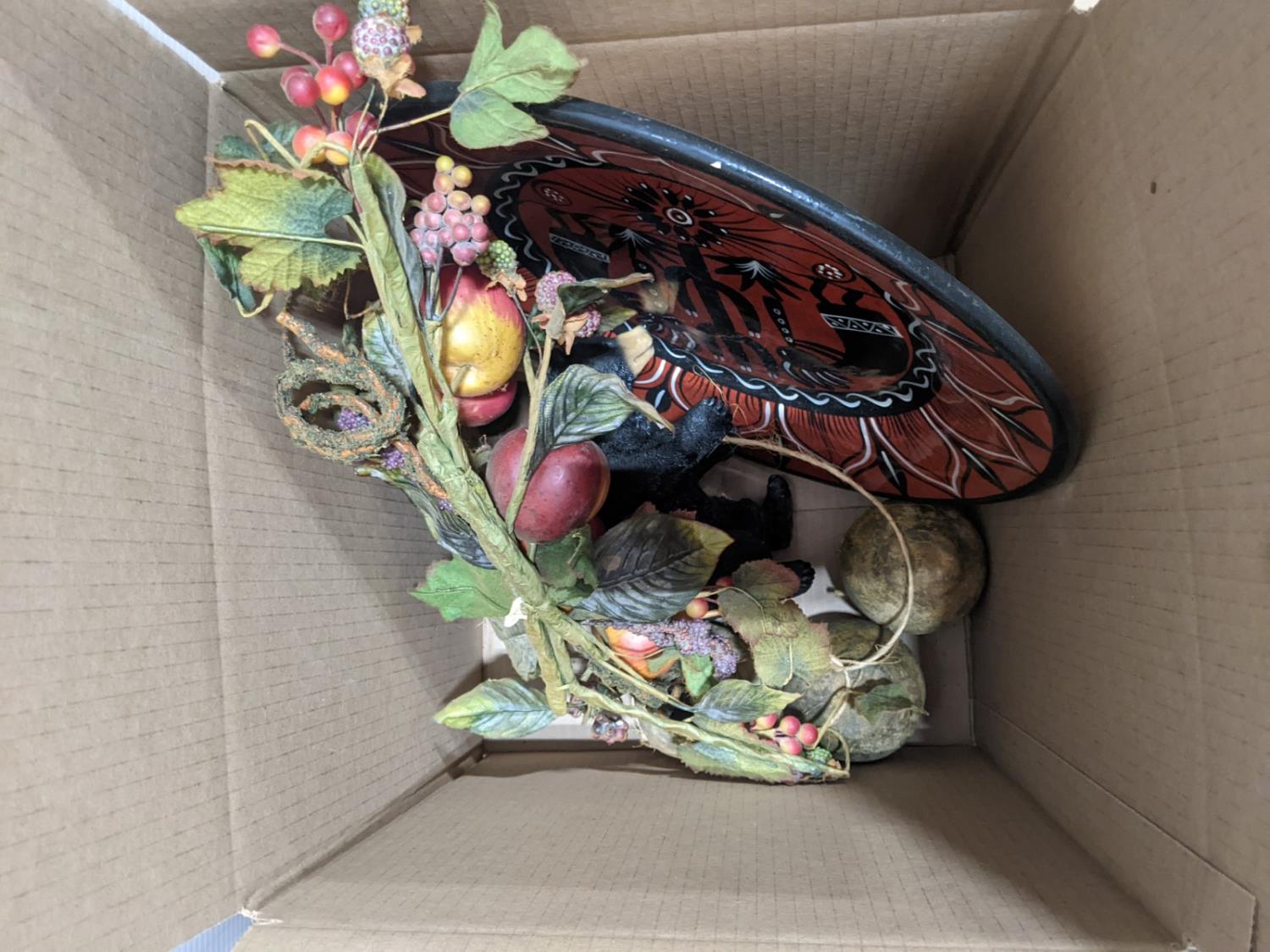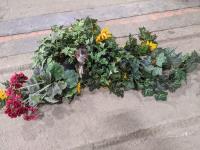 Artificial plants, assortment of tins, glass bottles and jars