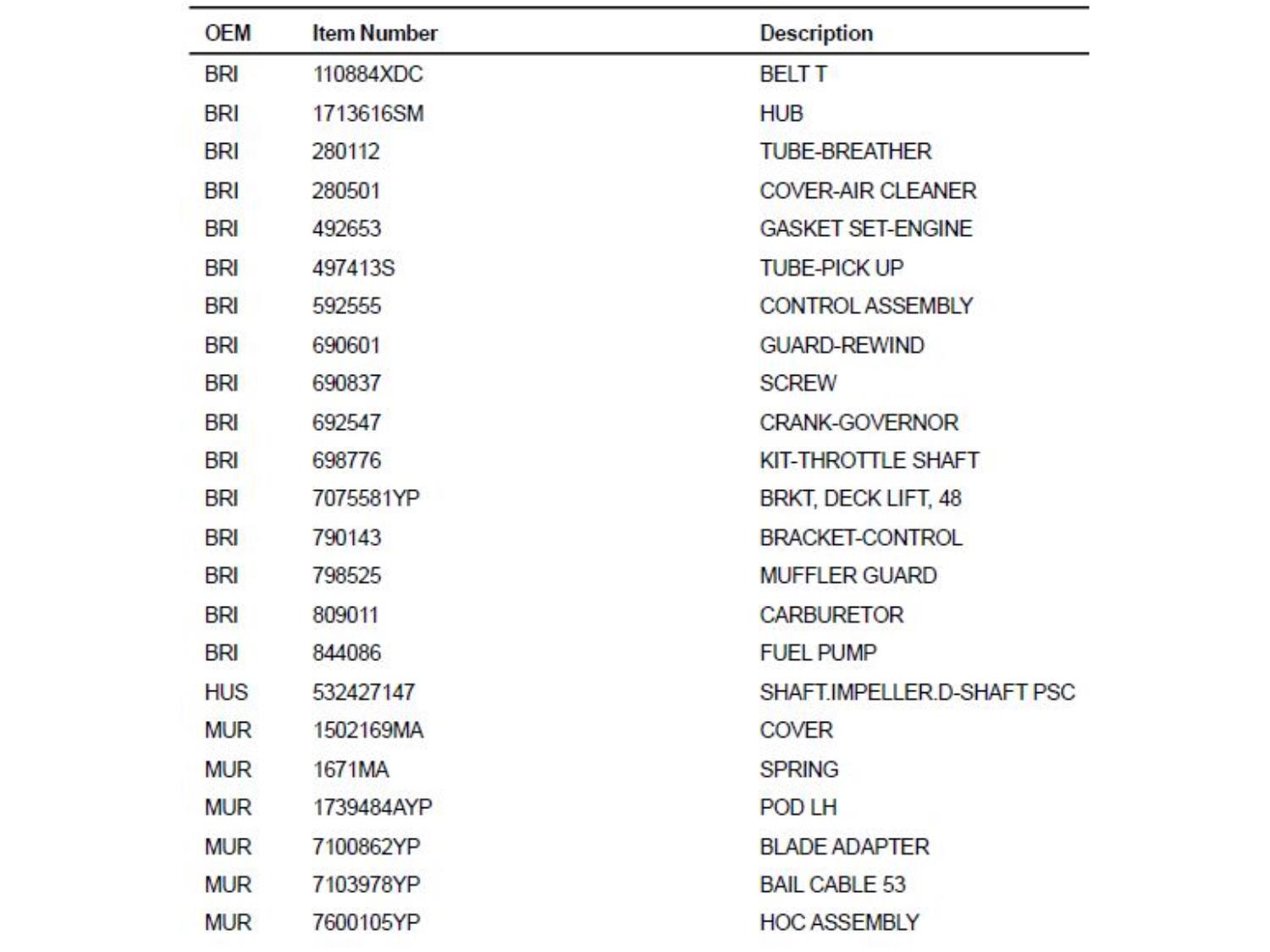 1234 Qty of Mower Parts (Unused)