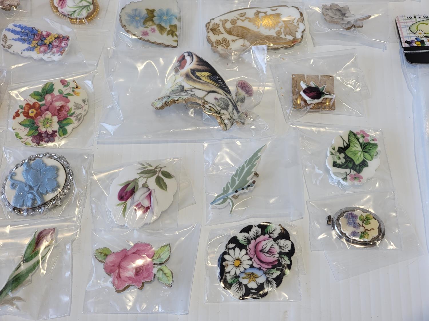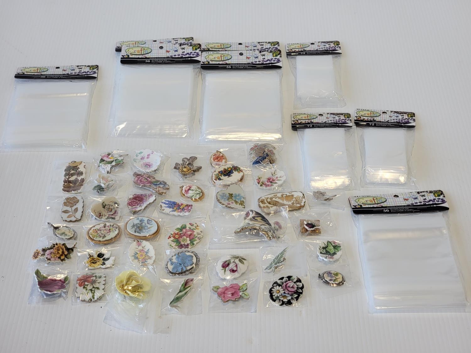 2101 Qty of Porcelain Broches and Craft Bags