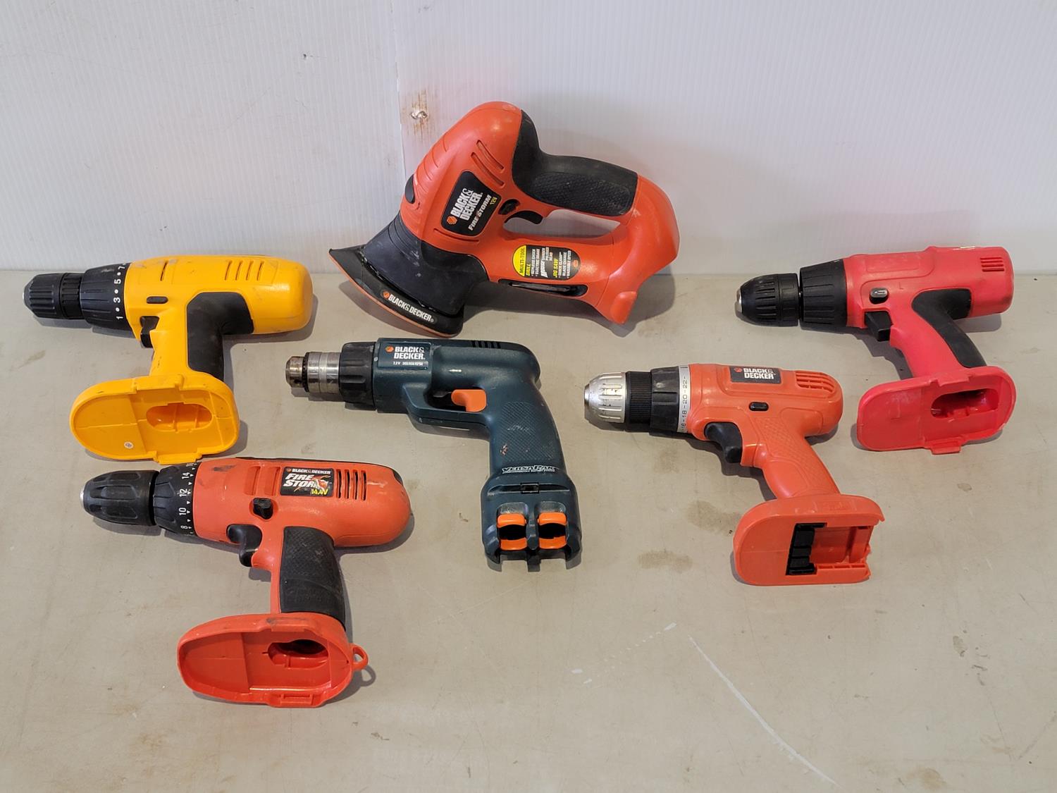 Black and Decker multi-tool, (3) Black and Decker drills, (2) drills