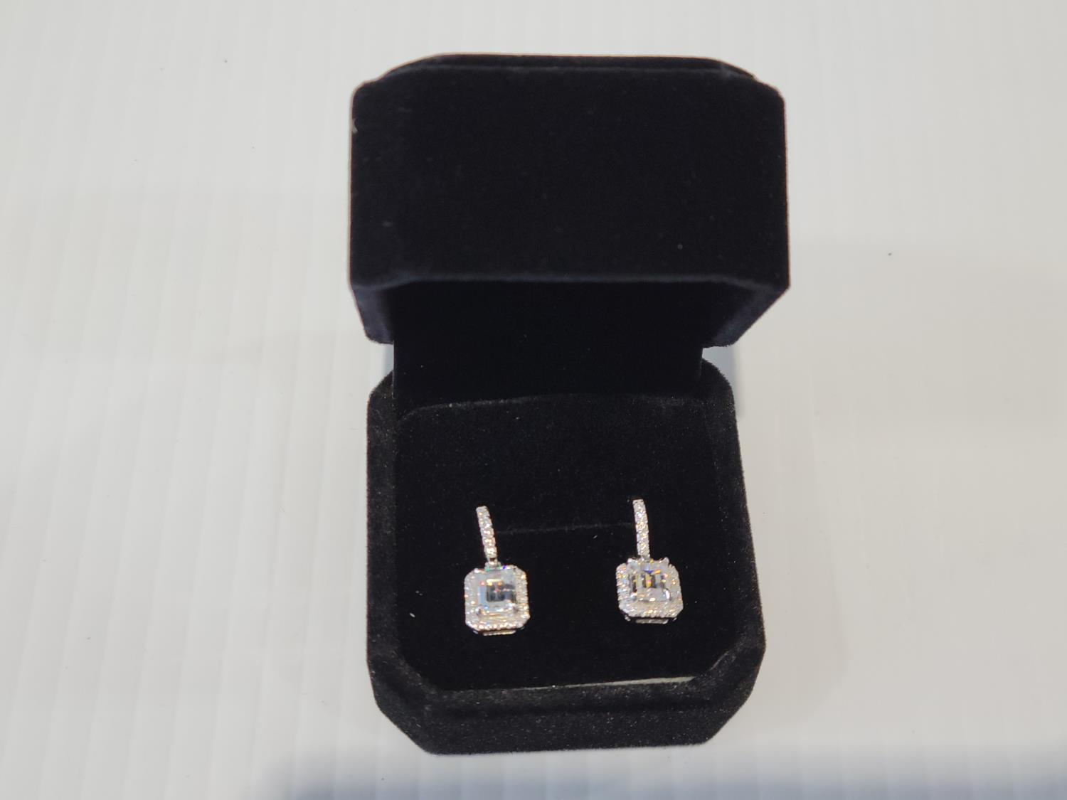 2118 Smartlife 1.0 Ct Moissanite Diamond Emerald Cut Dangle Earrings (Unused)