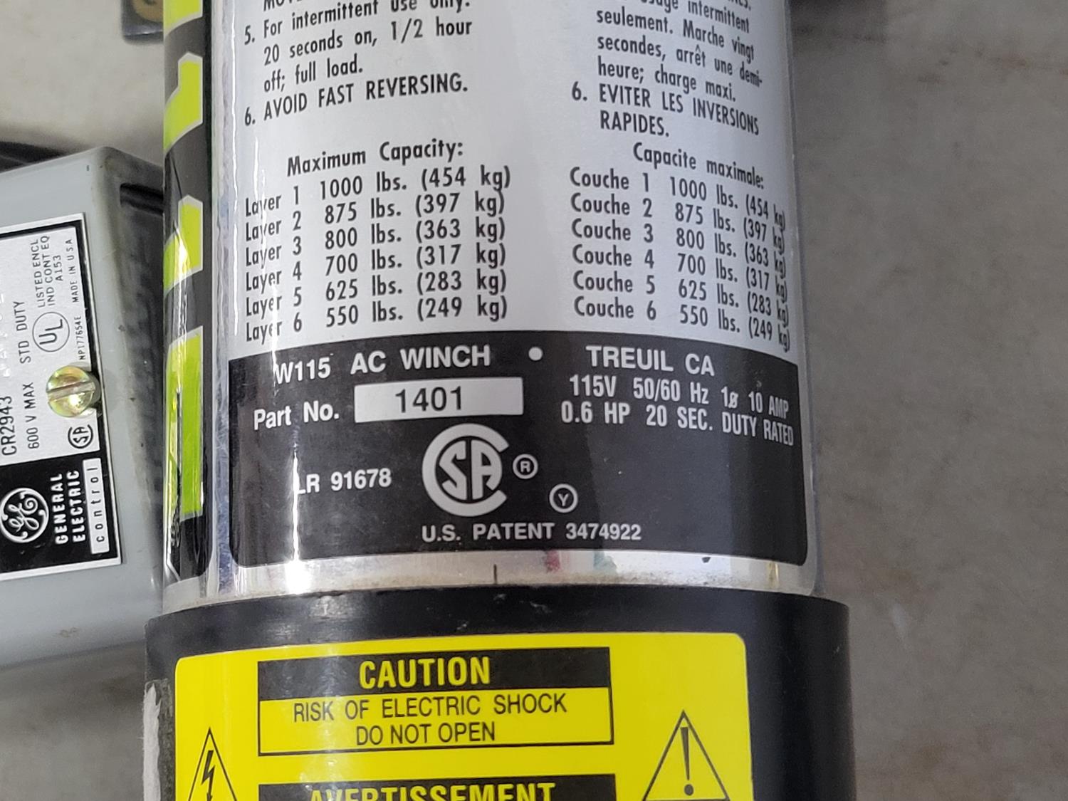 1742 Superwinch W115 1000 lb Winch