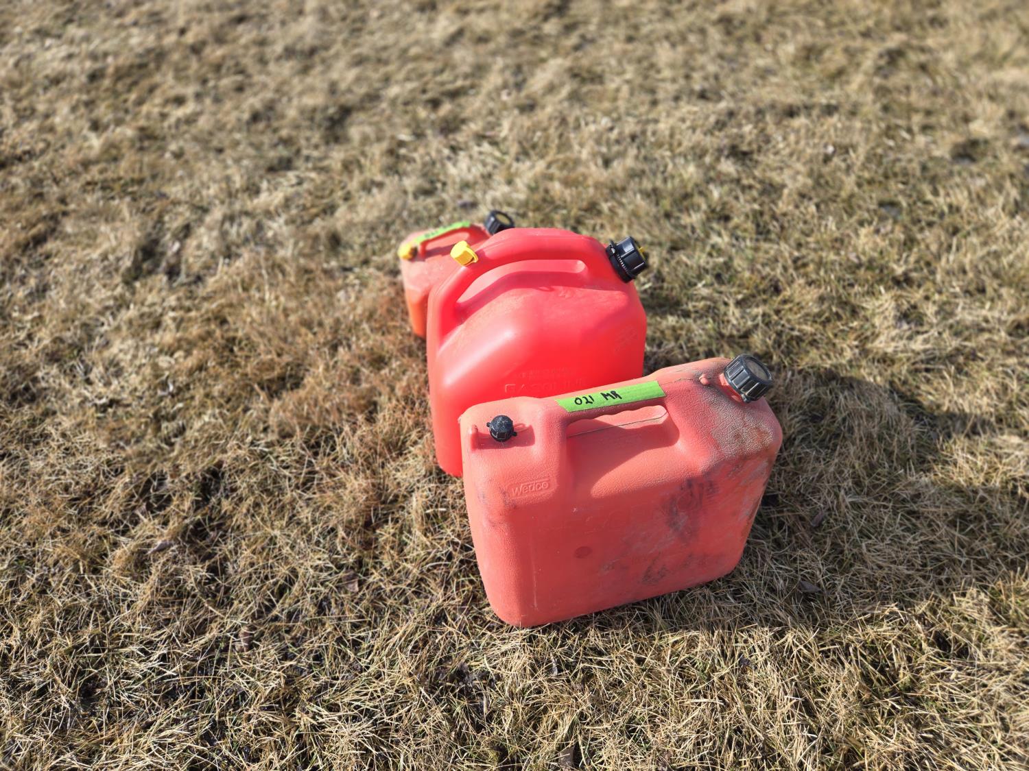 32 (1) 1.25 Gallon Jerry Can, (2) 5.3 Gallon Jerry Cans