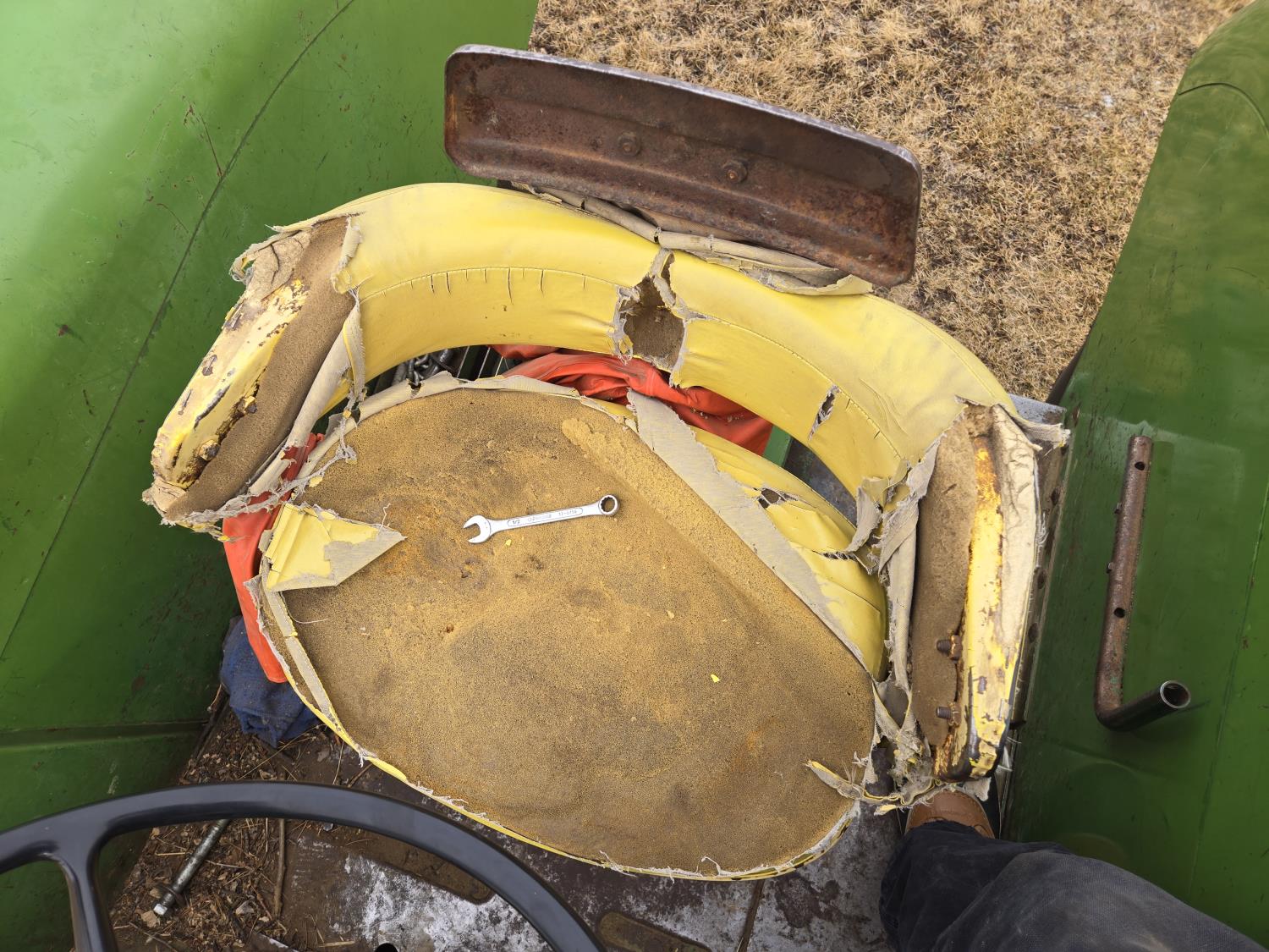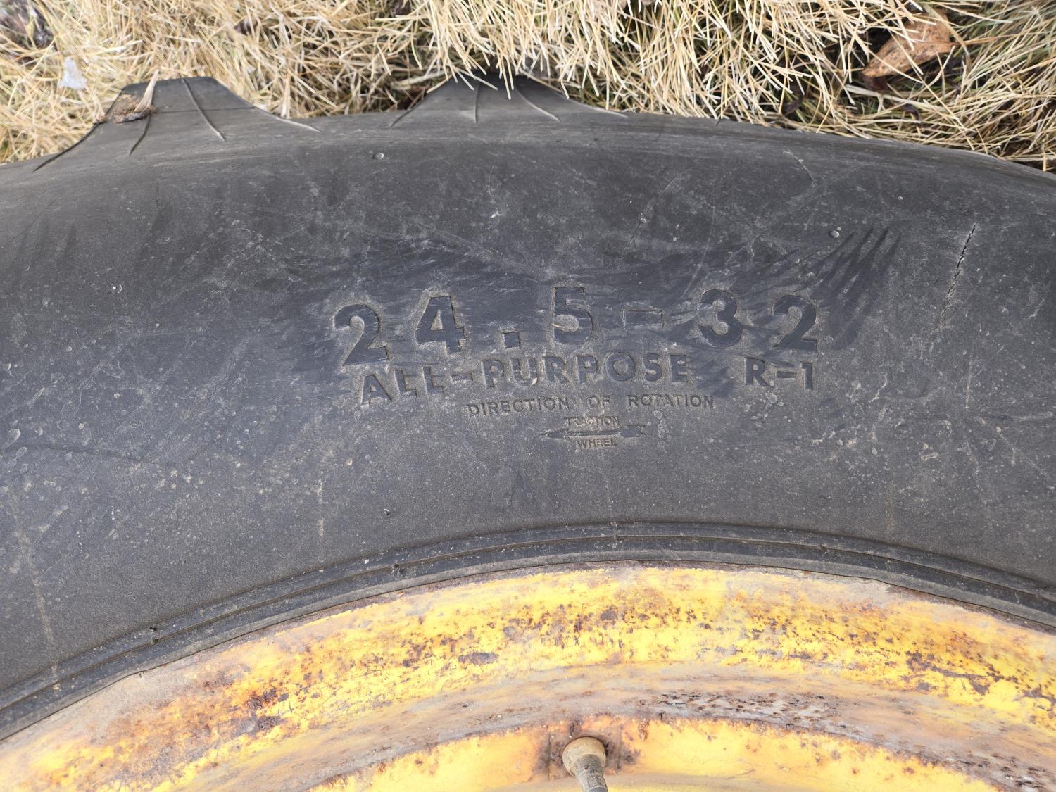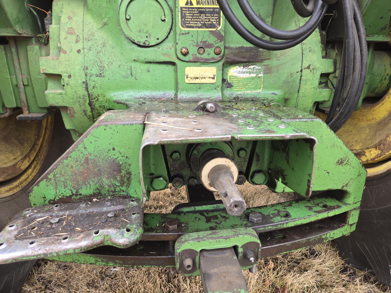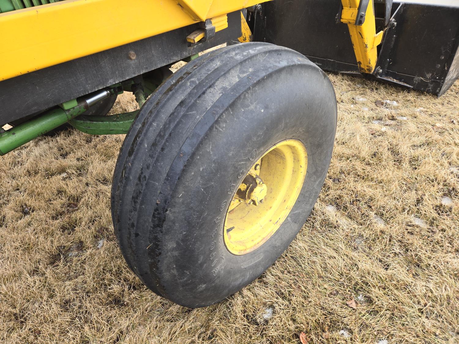 Ezee-On 125 loader, 84 inch bucket, John Deere 8.7 L 6 cylinder diesel engine, 140 PTO HP, 8 speed partial synchro transmission, 1000 PTO, 2 rear hydraulic outlets, rear wheel weights, 11.00-16 front tires, 24.5-32 rear tires