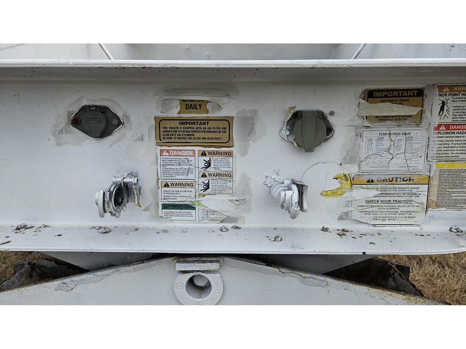 King pin hitch, 8 ft box width, 94 inch side wall height, push block, air brakes, spring suspension, 3 lift axles, 11R22.5 tires