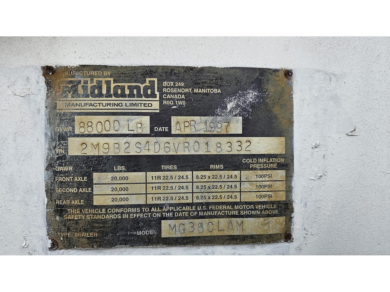 316 1997 Midland 38 Ft Tri-Axle Clam Bottom Dump Trailer